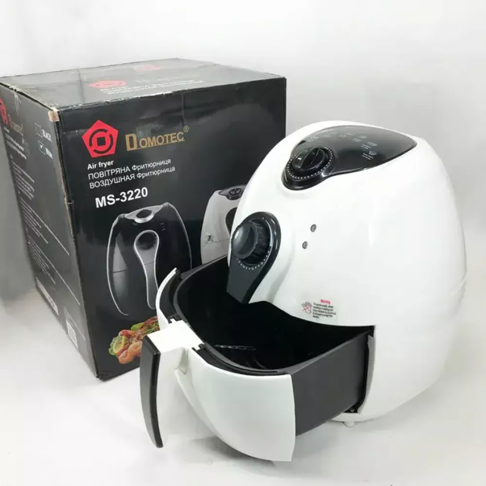 Фритюрниця Domotec MS-3220 потужністю 1300Вт нагрівається всього за 2-3 хвилини і використовує технологію швидкої циркуляції гарячого повітря, щоб готувати їжу набагато швидше, ніж звичайна духовка. Це ідеально підходить для зайнятих домогосподарок і для економії електроенергії
