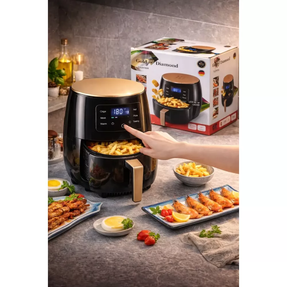 Удобное управление, безопасность и легкая очистка делают аэрофритюрницу Gold Diamond TK 09904 6л 3200 Вт.