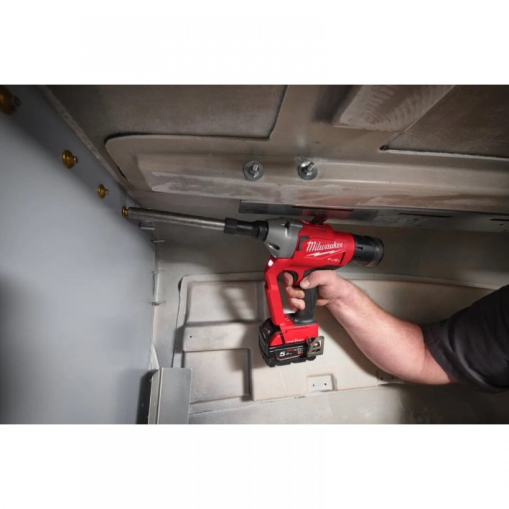 Встановлює до 1200 алюмінієвих витяжних гайок 6,4 мм за допомогою одного повністю замінного акумулятора M18™ 5,0 А·год.