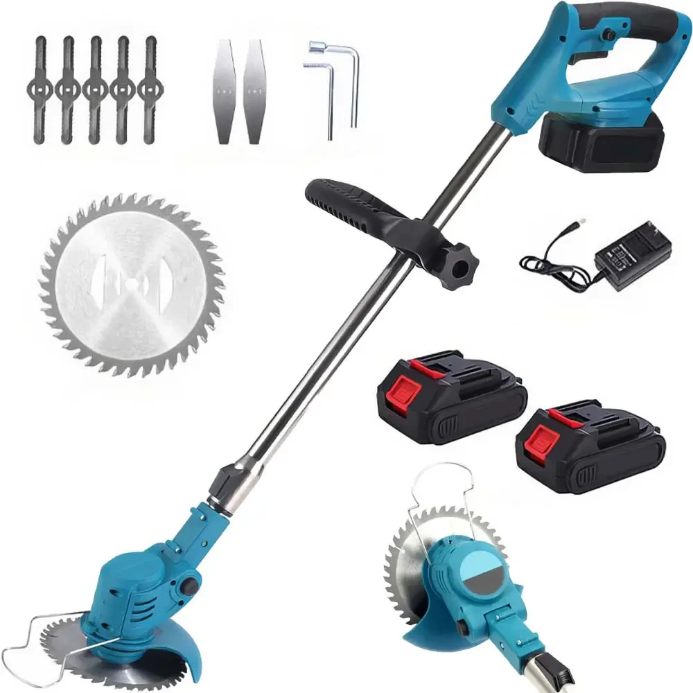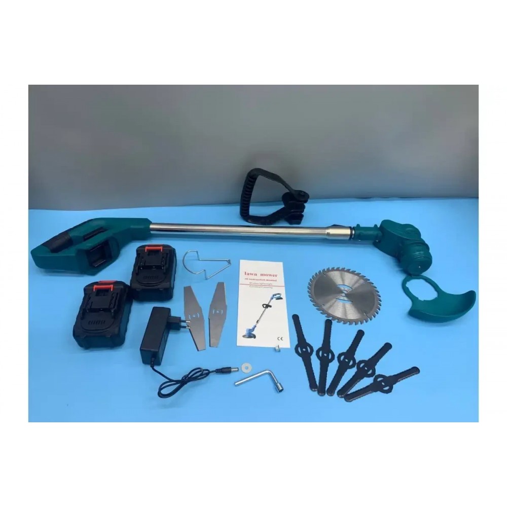 Аккумуляторная газонокосилка-триммер для покоса травы MK-150B Blue Беспроводная газонокосилка для сада