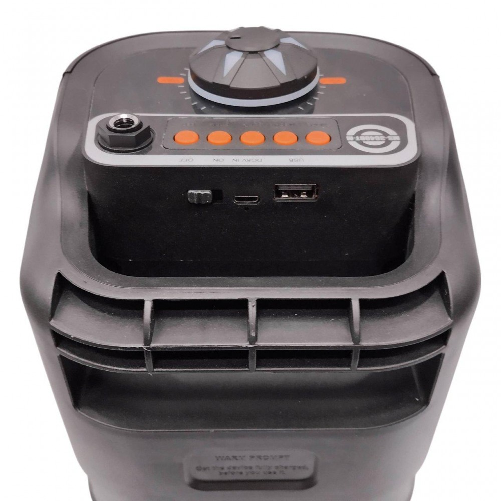 Описание: Режимы: Bluetooth, дополнительный, FM-радио и проигрыватель памяти. Дисплей с подсветкой. Двойной динамик для более сильного звука. Физические кнопки режима воспроизведения, громкости и эквалайзера. Система TWS: беспроводное подключение к другому динамику для мощного стереозвука. Совместим со всеми последними устройствами Bluetooth. Воспроизводите музыку с USB-накопителя или микро SD объемом до 32 ГБ. Вход 6,3 мм для подключения проводного микрофона (входит в комплект). Ручка для удобства транспортировки. вертикальный рог. Аккумуляторная батарея через micro USB или 5 В постоянного тока. RGB-подсветка для очень эффектного внешнего вида. Размеры: 16,5 х 16 х 39 см. Характеристика: Расстояние Bluetooth: от 8 до 10 метров Выходная мощность: 10 Вт x2 Частотная характеристика: 100 Гц-20 кГц FM-диапазон: 87,5-108 МГц FM-диапазон: 87,5-108 МГц Аккумулятор: 1500 мАч Напряжение: 5 В