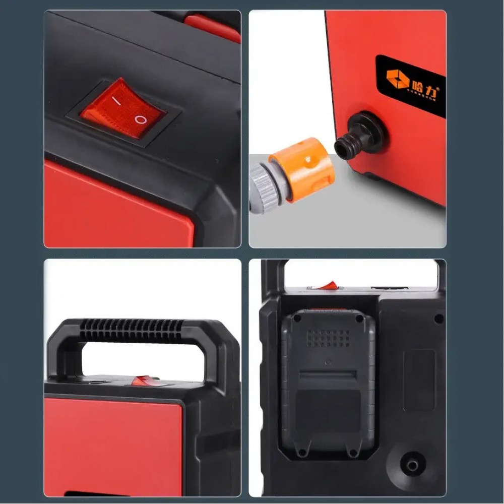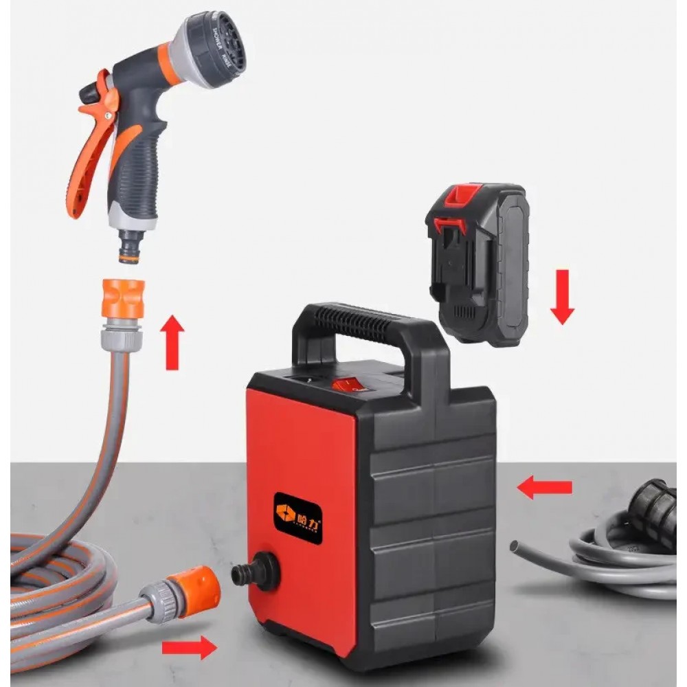 Благодаря портативной конструкции и двум съемным аккумуляторам, помпа может использоваться в любых условиях, включая места без доступа к электросети. Оснащена длинным шлангом, мощным насосом и многофункциональной насадкой с 8 режимами полива.