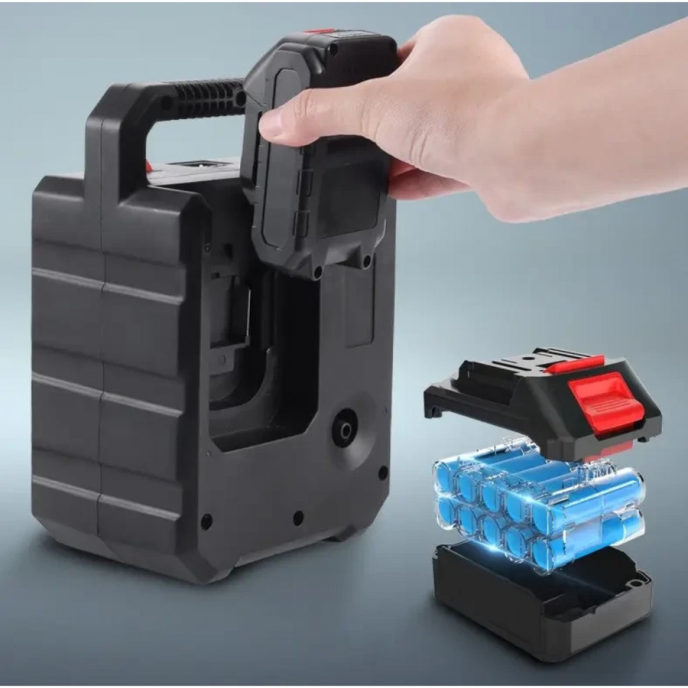 Автономность работы – два литиевых аккумулятора позволяют использовать помпу без подключения к электросети, обеспечивая до 90 минут непрерывной работы.