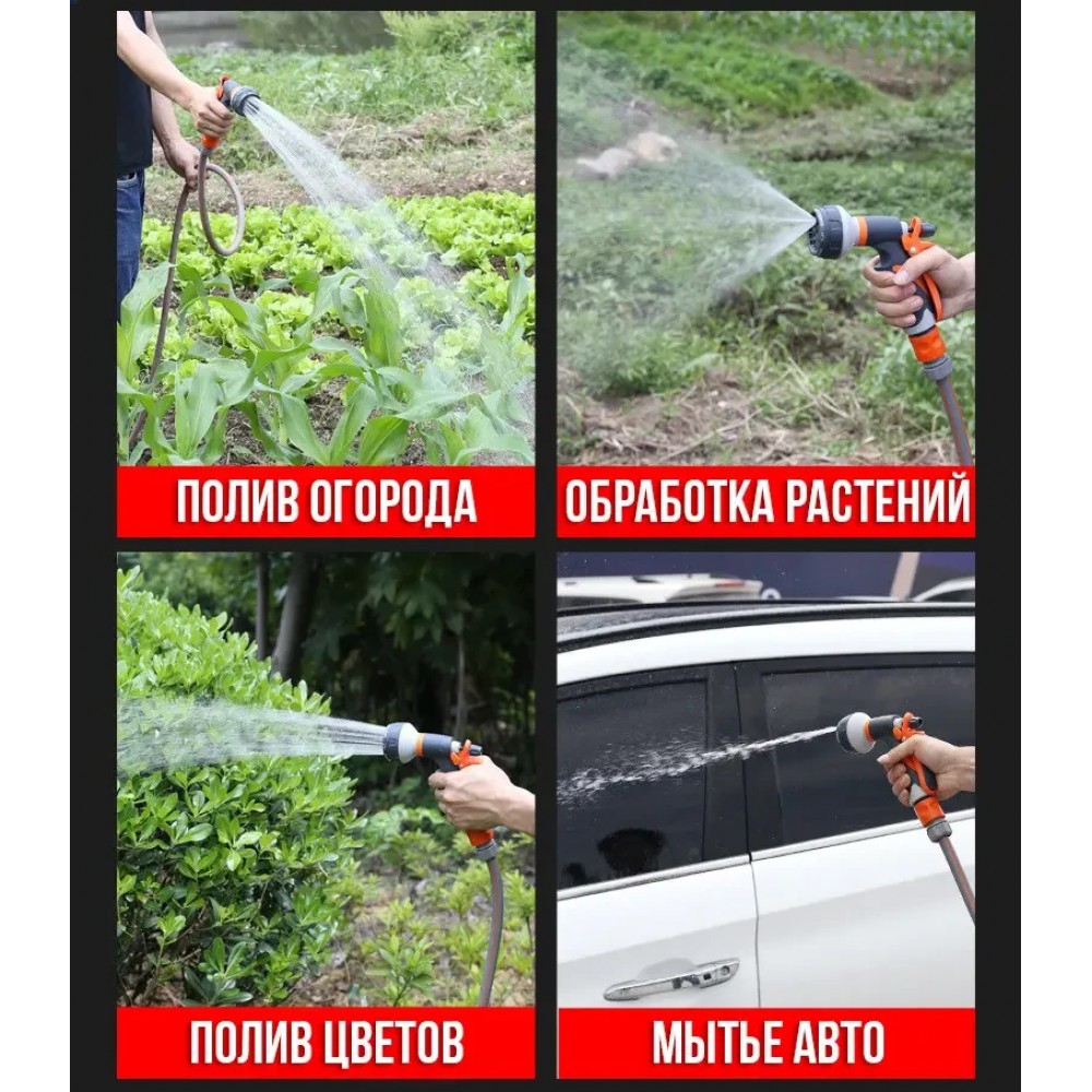 Многофункциональный распылитель – 8 режимов полива позволяют регулировать поток воды в зависимости от задачи: от мягкого распыления для цветов до сильного напора для мойки.