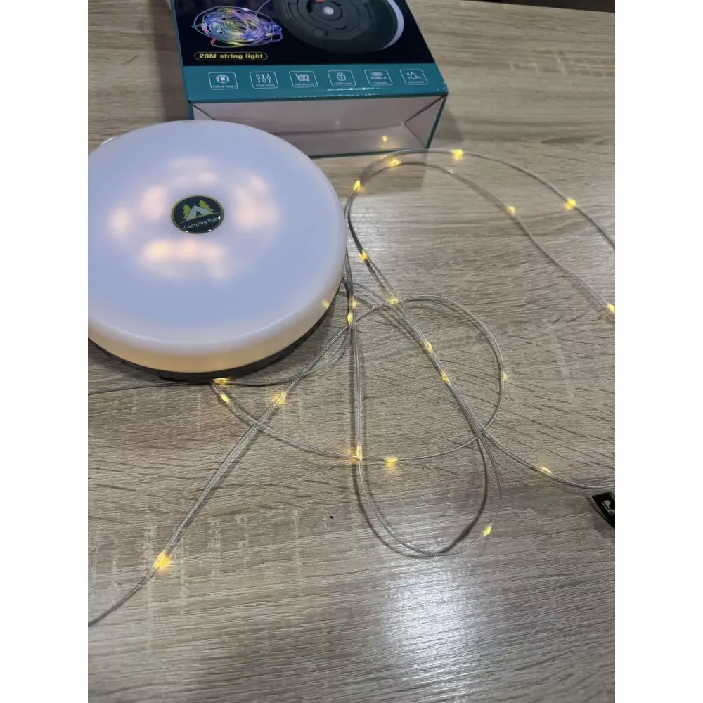 Аккумуляторный фонарь с гирляндой, USB и магнитным креплением / Подвесной фонарь для кемпинга 20м