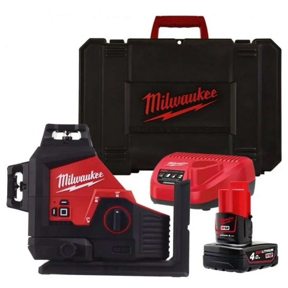 Нівелір лазерний 3D акумуляторний MILWAUKEE, M12 3PL-401C (+заряд. пристрій. ,1акум.Х4Аг, кейс)