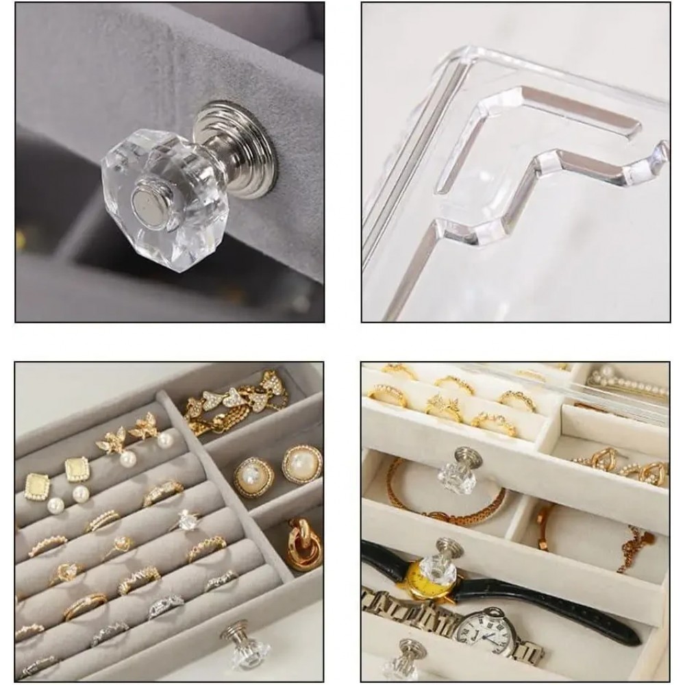 Прочный, толстый, кристально прозрачный акрил обеспечивает отличную защиту от пыли для Ваших ювелирных изделий, тогда как мягкая бархатная внутренняя часть защищает Ваши ценные вещи от царапин и повреждений.