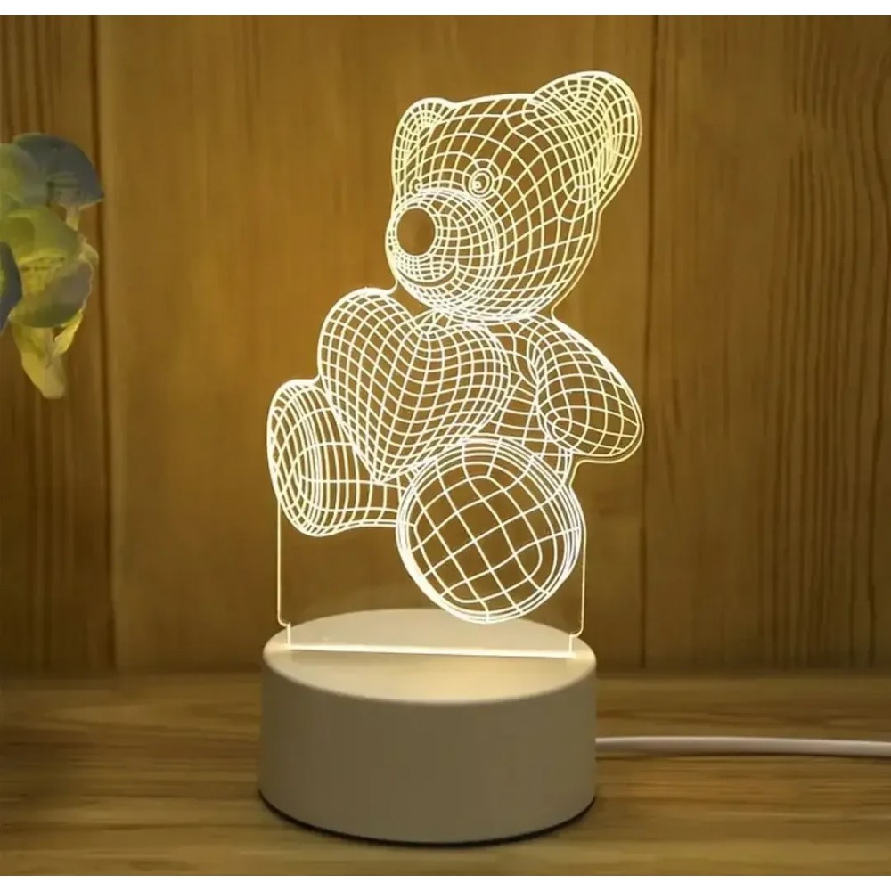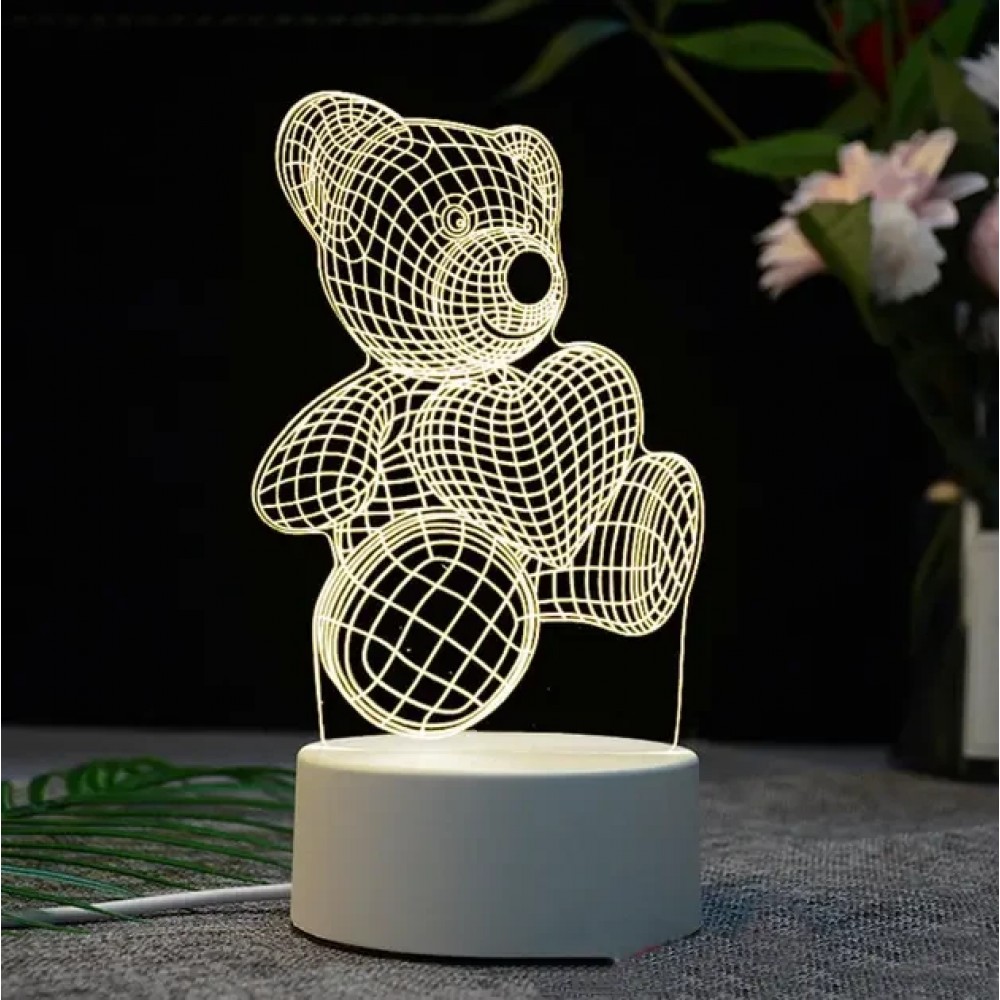 Акриловый 3D ночник-светильник Мишка несколько подсветок с пультом