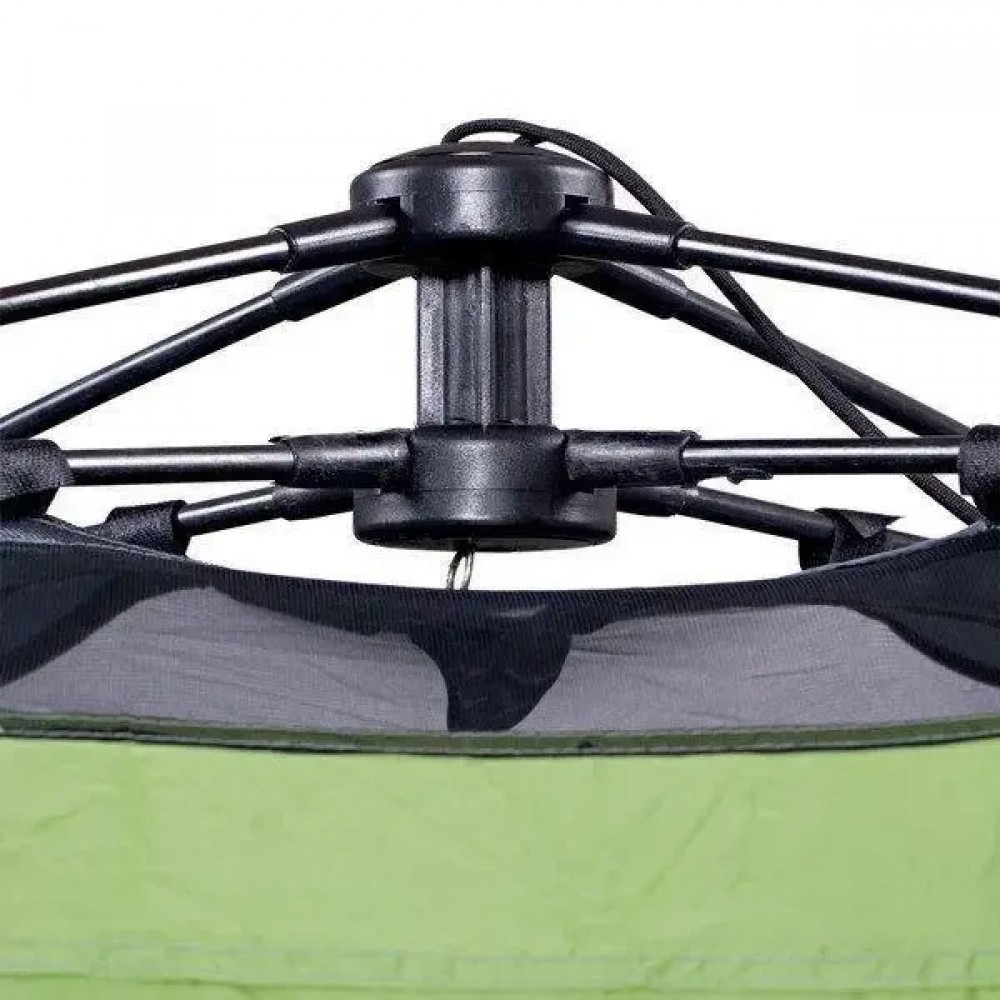 Стойки из стекловолокна не будут деформироваться при длительном использовании, так что эта палатка прослужит многие годы. Палатка раскладывается очень просто: раскрывается как зонт. Вам понадобится до 2-х минут, чтобы её разложить.