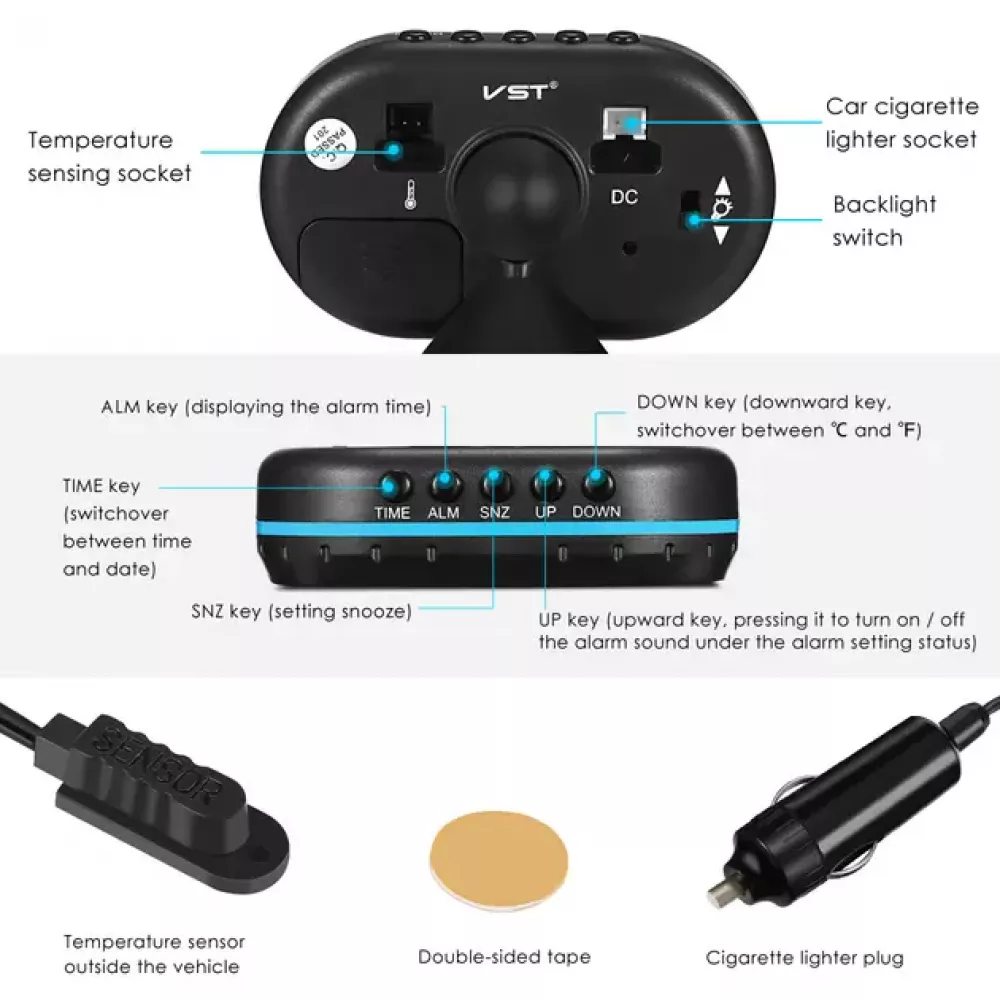 Описание функций автомобильных часов VST 7009V: