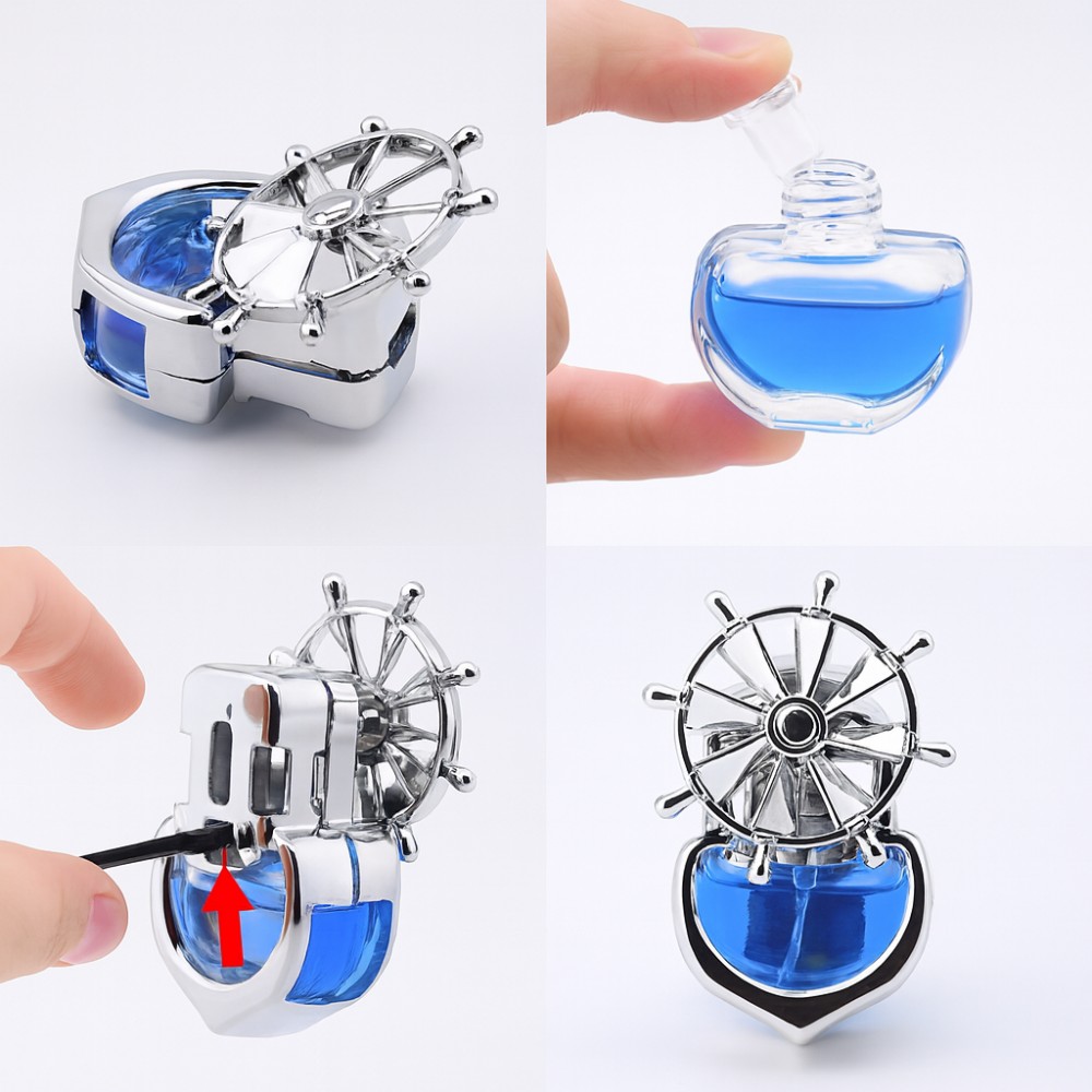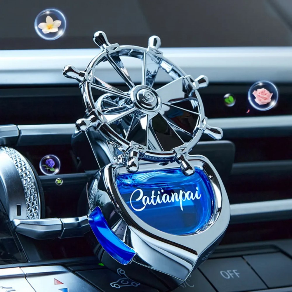 Автомобильный ароматизатор «Штурвал» (Vert-17) — это оригинальный аксессуар для тех, кто ценит стиль и свежесть в салоне. Эффектный дизайн в форме штурвала подчёркивает динамичность и добавляет интерьеру нотку морской тематики. При движении воздуха из вентиляционной решётки лопасти штурвала начинают вращаться, создавая живой визуальный эффект и равномерно распределяя аромат по салону.
