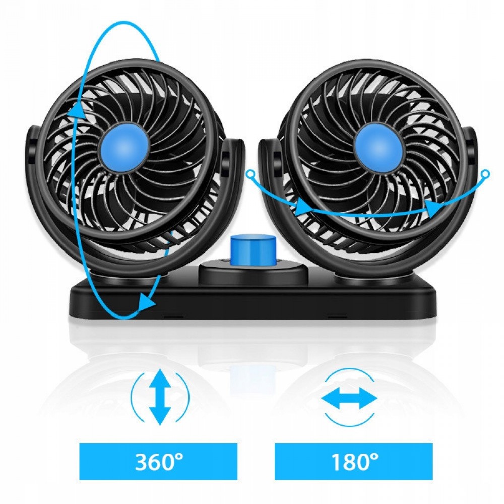 Автомобильный вентилятор Cospex 12 В, вращающийся на 360 градусов, с двойной головкой, 2 скорости, тихий, мощный, для приборной панели, вентилятор с автоматическим охлаждением для всех автомобилей