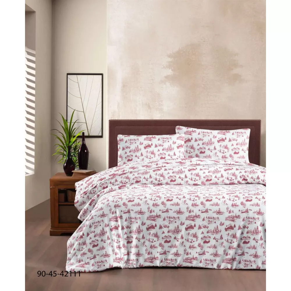 Белый с красным Теплое постельное белье / байковое евро размера фланель 100%-хлопок Турция Cotton Collection