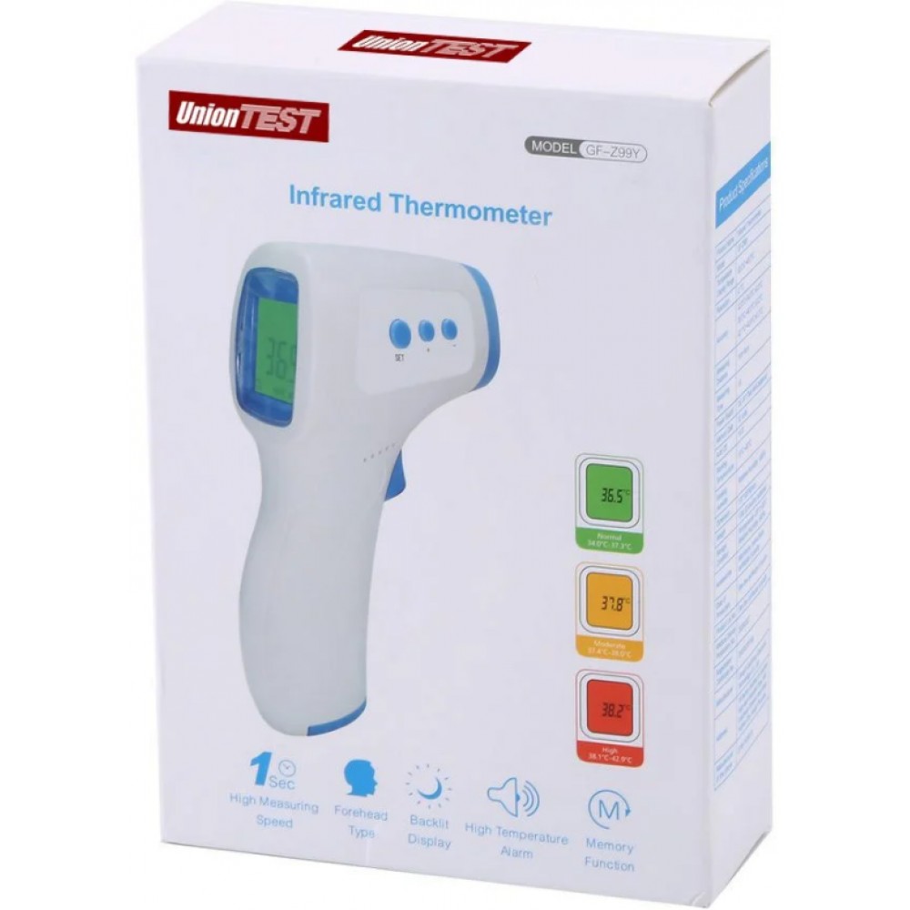 Инфракрасный термометр GF-Z99Y - прибор для бесконтактного измерения температуры. Действие такого типа термометров основано на принятии чувствительным датчиком инфракрасного излучения (тепла) от поверхности тела человека или другого объекта. Результат измерения в цифровом значении выводится на экран термометра в градусах Цельсия °C или Фаренгейта °F. Основное достоинство инфракрасного термометра в мгновенном получении результата без контакта с объектом. Может применяться для домашнего использования и в условиях производства, офисах, общественных местах.
