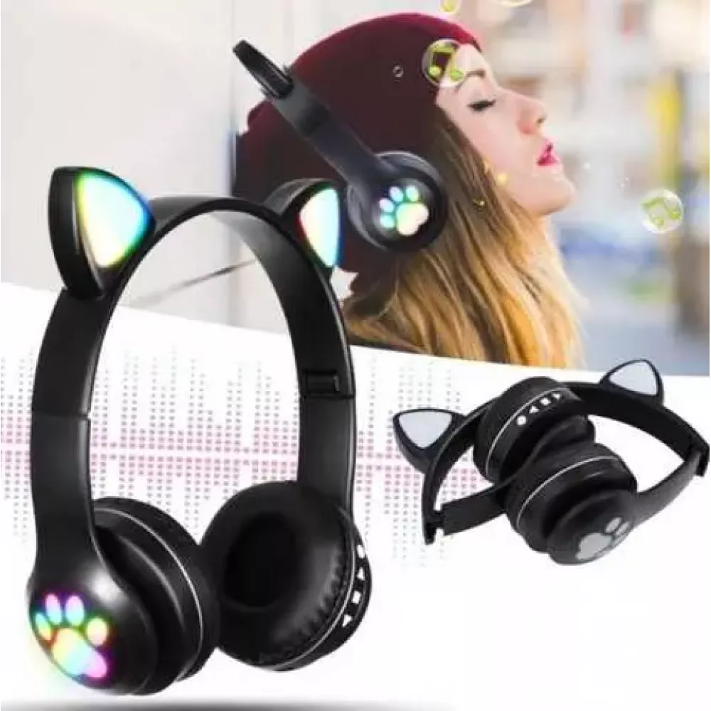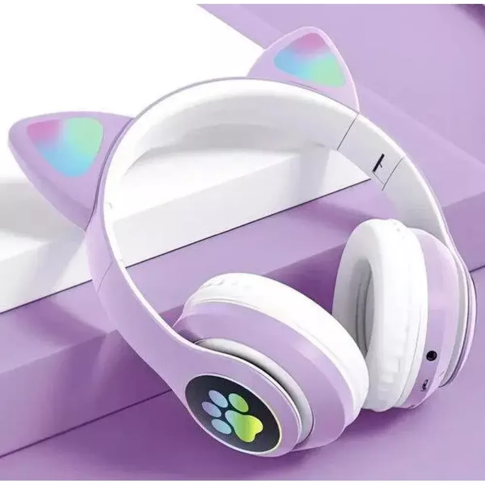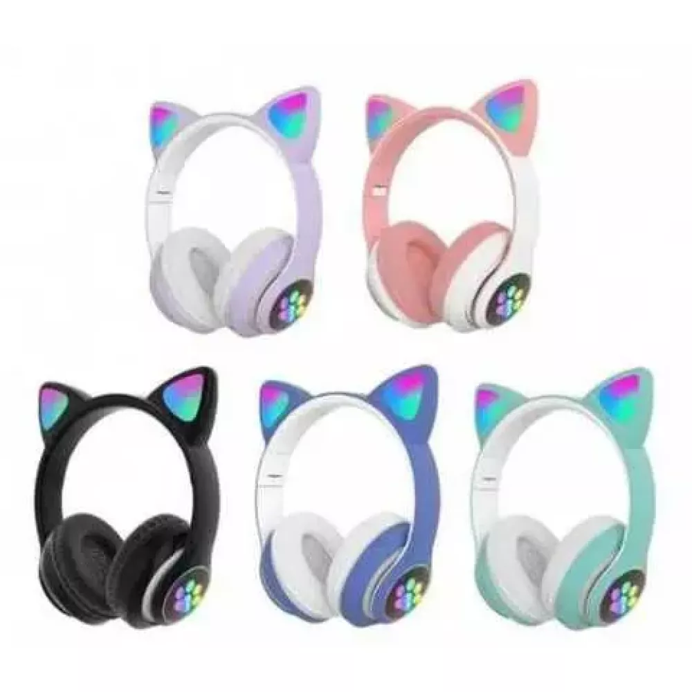 Беспроводные детские MP3 Наушники с Ушками с подсветкой + поддержка MicroSD с FM-Радио Cat Ear STN-28 Bluetooth
