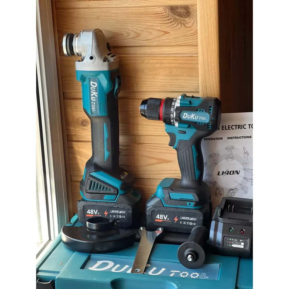 Комплект 2-в-1 предлагает вам мощную ударную дрель DTW488 и компактную аккумуляторную болгарку DGA506ZPRO, оба оснащены бесщеточными двигателями 48V и аккумуляторами 6.0Ah.