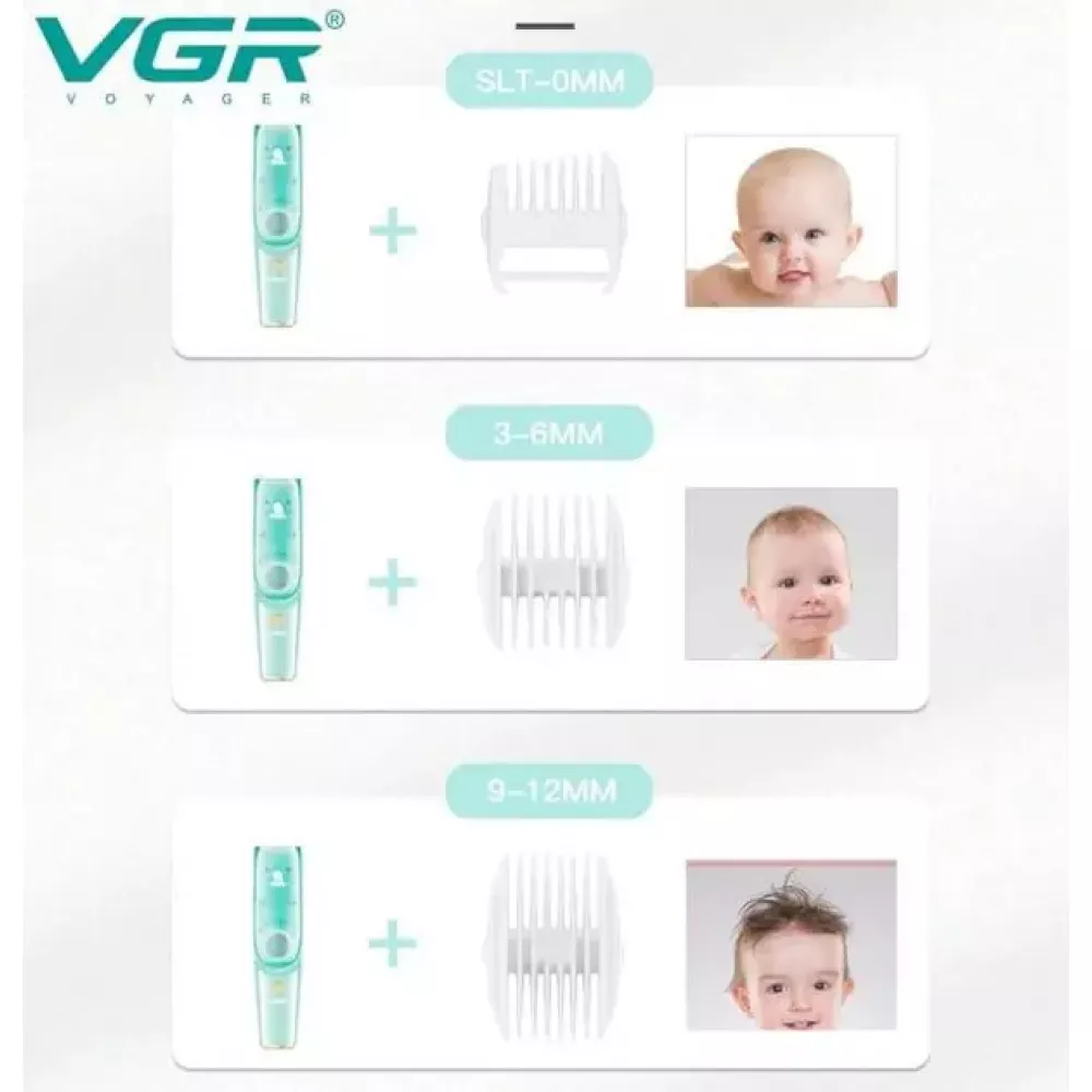 Бесшумная машинка для стрижки детей и младенцев VGR Baby V-151, Беспроводной триммер 3 насадки с вытяжкой