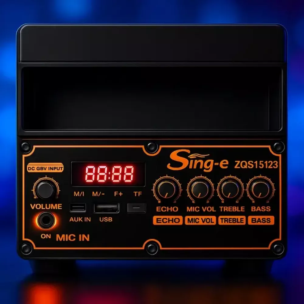 Колонка SPS ZQS15123 – портативная 15-дюймовая акустическая система для караоке и мер, оснащенная 40 Вт мощности, Bluetooth, USB, TF-карты, FM-радио, AUX, беспроводным микрофоном, пультом ДУ, светодиодным мобильный звук.