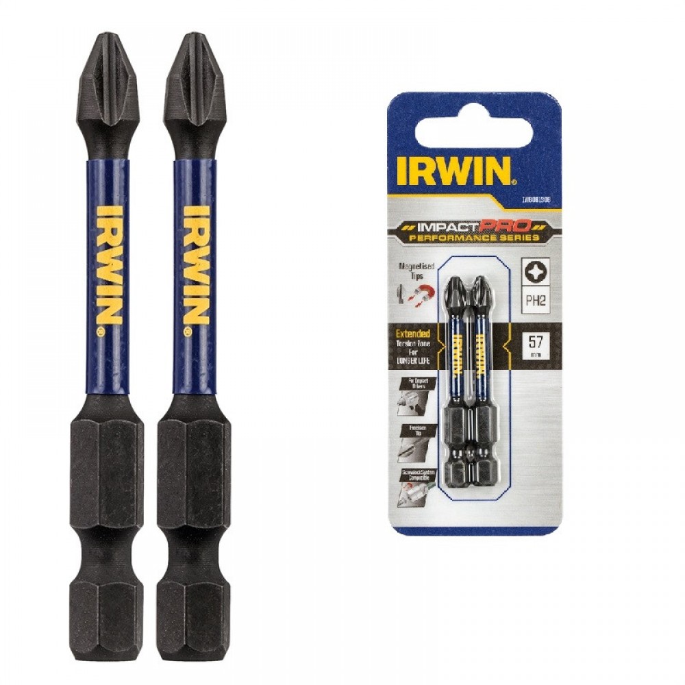 Бита IMPACT PRO 1/4"/57мм PH2 2шт, IRWIN