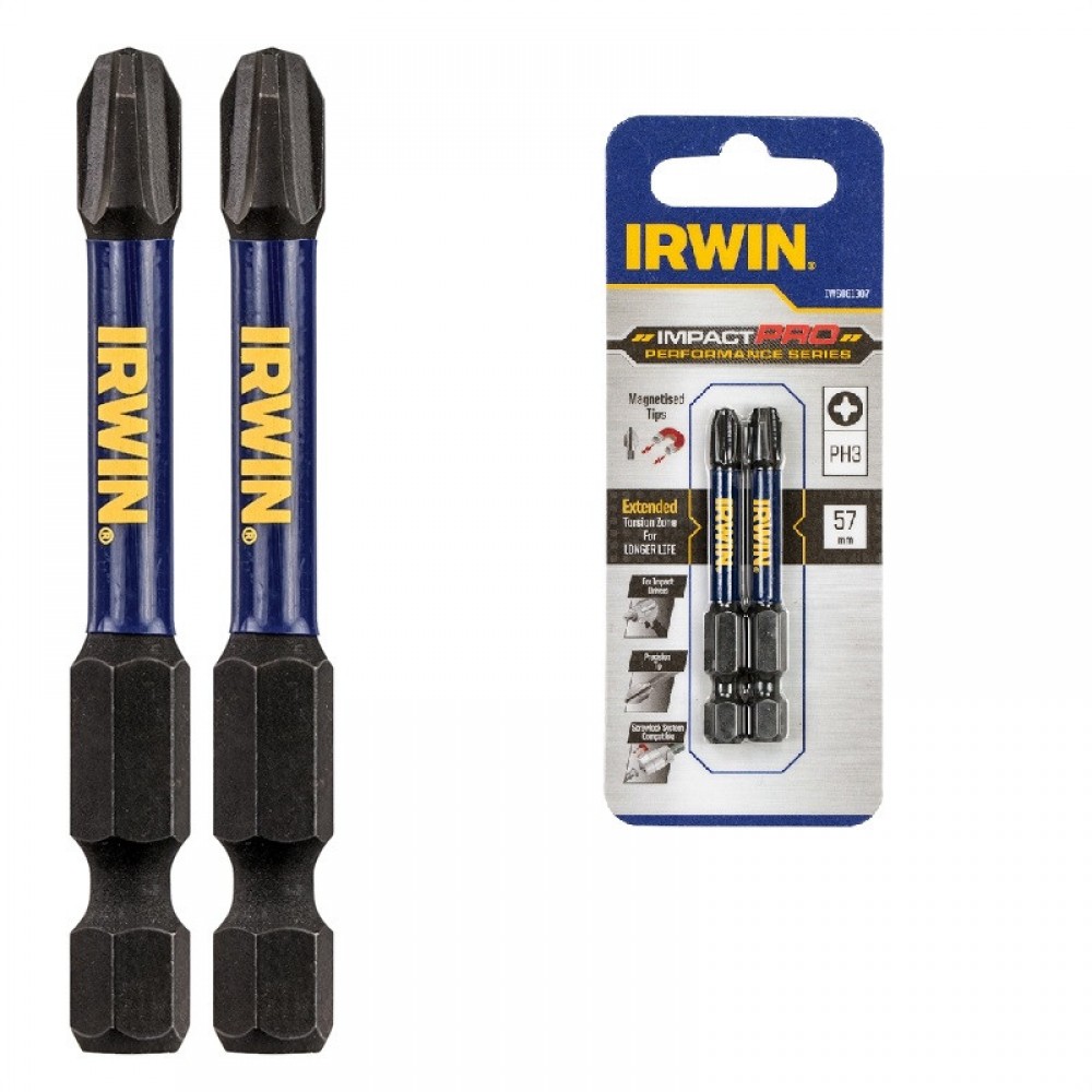 Біта IMPACT PRO 1/4"/57мм PH3 2шт, IRWIN * Інноваційна геометрія наконечника для повної посадки на головку гвинта, виключаючи коливання, рухи, прослизання та виліт * Оптимізована зона гнучкості для передачі максимального крутного моменту через гвинт та збільшення терміну служби * Сумісна з магнітною насадкою IW6064604 для кращого утримання кріплення Серія IMPACT PRO PERFORMANCE - це інноваційна лінійка високоміцних ударних аксесуарів IRWIN , розроблена для використання з найпотужнішими ударними приводами!