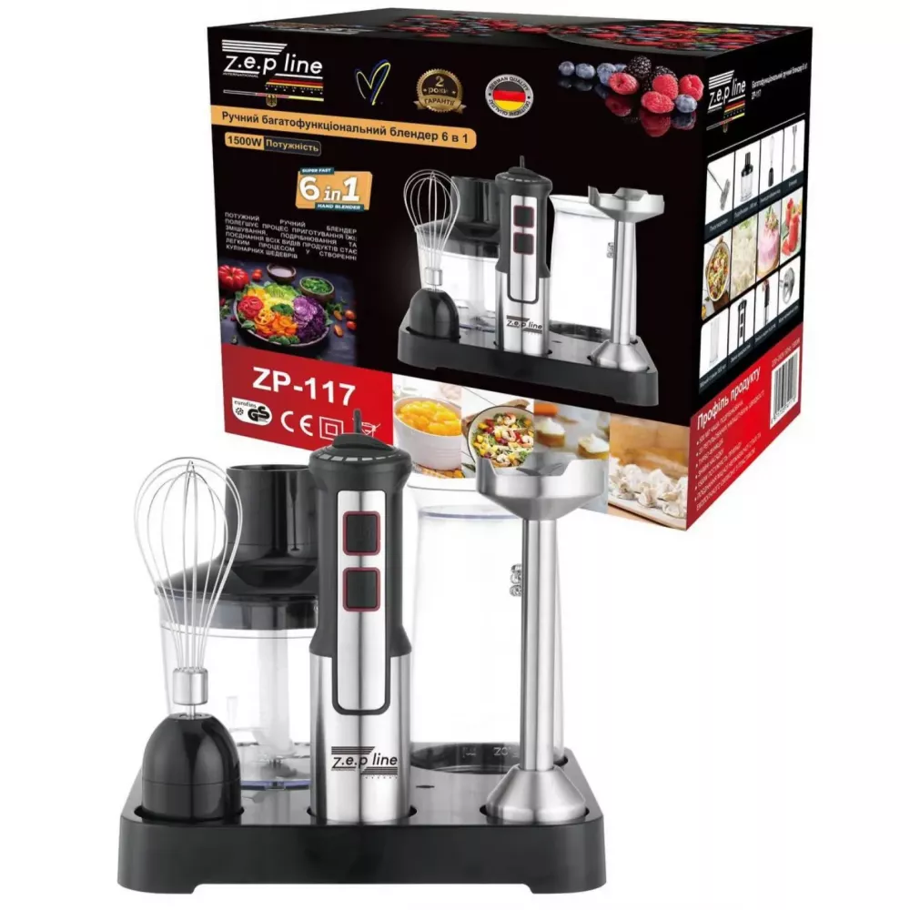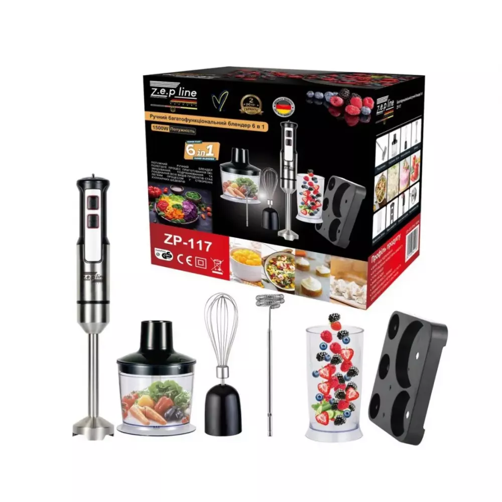 Блендер погружной домашний кухонный 6в1 Zepline ZP-117 1500Вт блендер, измельчитель, миксер