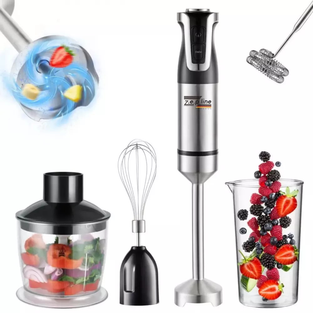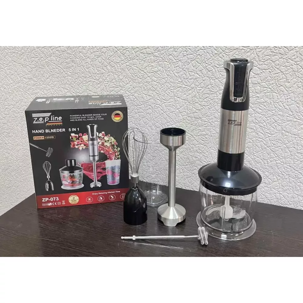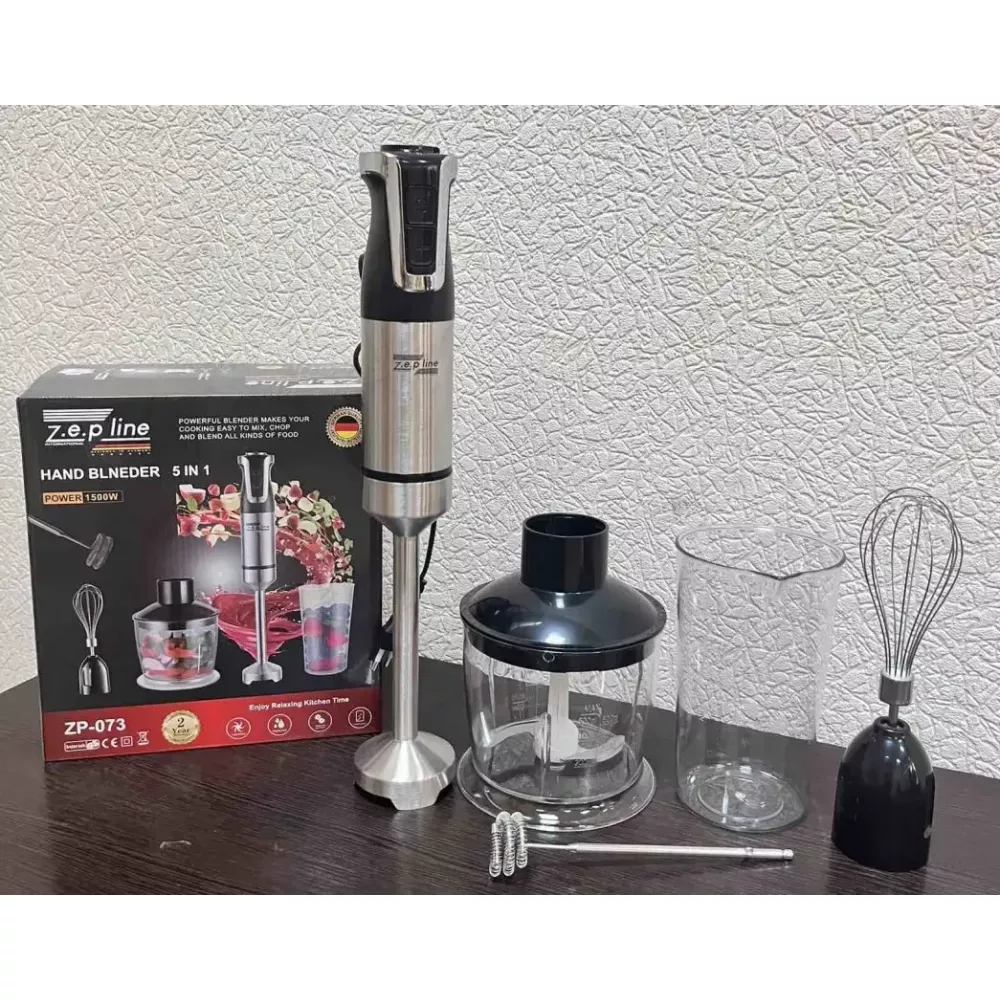 Блендер ручной 5 в 1 на 1500 Вт с измельчителем и насадками миксер и вспенитель молока 20 скоростей Zepline
