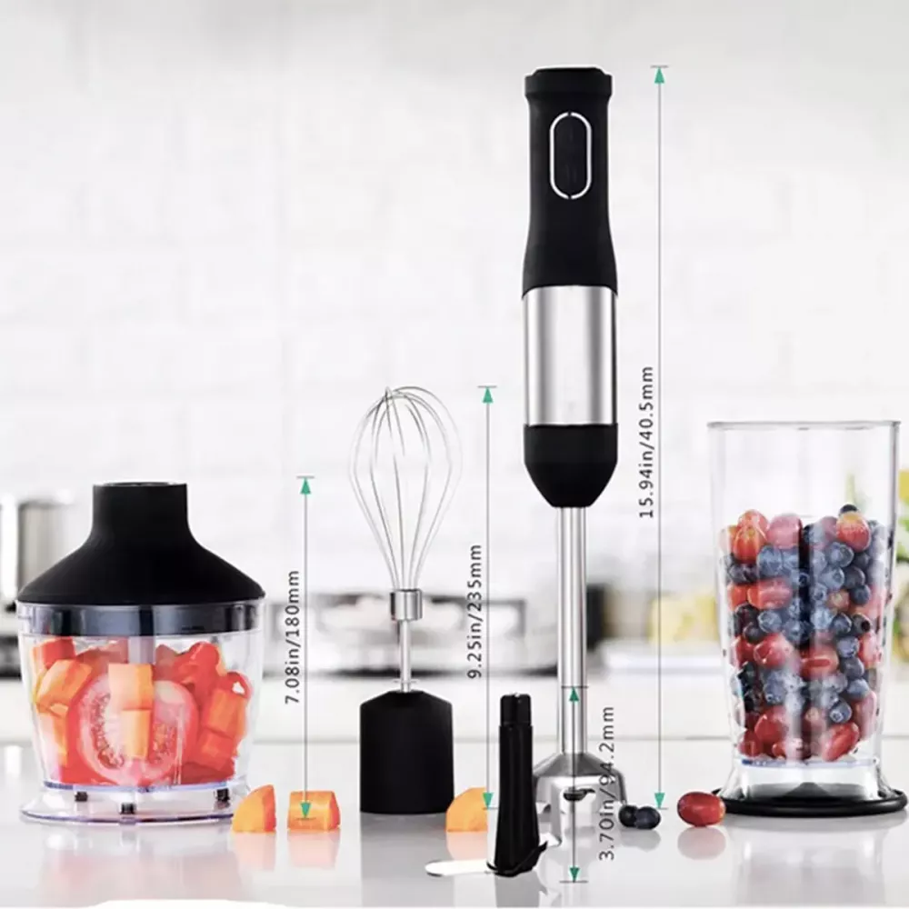 Погружный блендер ручной 5 в 1 на 1500 Вт с измельчителем и насадками миксер и вспенитель молока 20 скоростей и чаша Zepline