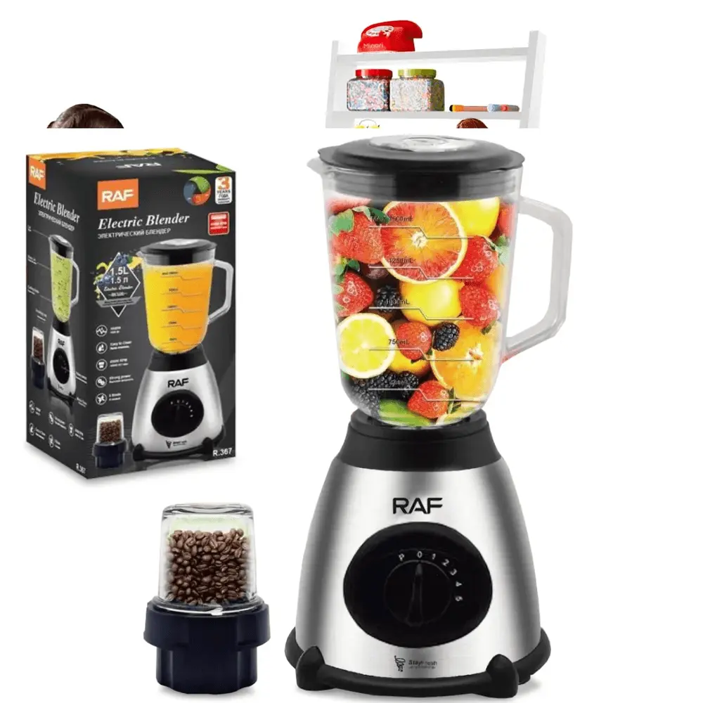 Блендер стационарный с кофемолкой RAF - настольный блендер идеальный помощник для взбивания белков, соусов, для смешивания фруктов и овощей, приготовления коктейлей и смузи, а также для колки льда для измельчения и смешивания различных видов орехов, кофейных зерен, с двумя режимами работы. Удобная конструкция обеспечивает легкую очистку и хранение.