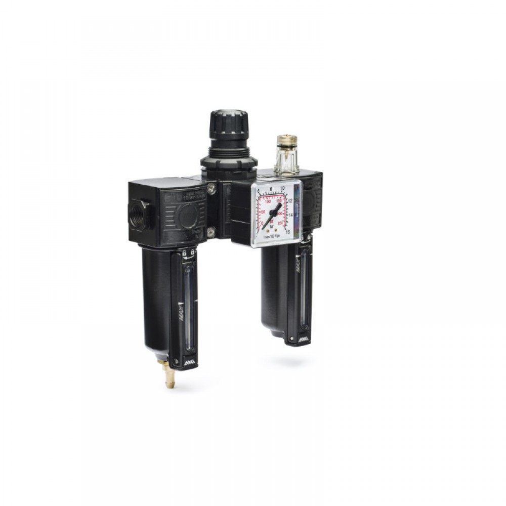 Блок підготовки повітря ANI Spa (AH116608) з редуктором – це елемент пневматичної системи, що відповідає за якість повітря, що подається до інструменту. Монтується блок після компресора чи бустера. Виконує очищення повітряної суміші від пилу, сміття, вологи та олії. На додаток, обладнання вміє регулювати тиск повітря, що надходить у систему.