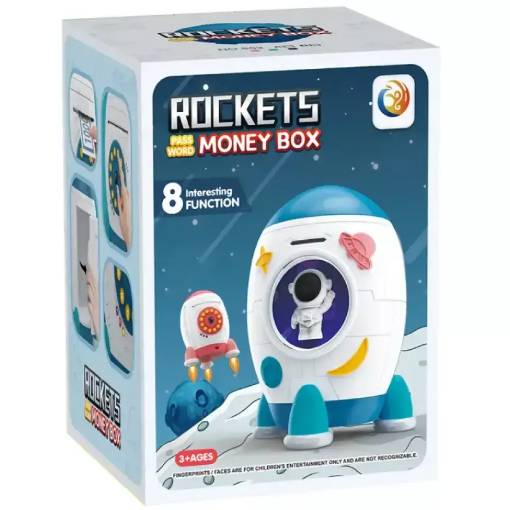 Электронная копилка-сейф 852A в форме космической ракеты станет отличным помощником для хранения сбережений вашего ребенка! Этот мини-сейф создан для юных исследователей вселенной, объединяя в себя оригинальный дизайн и множество интересных функций.