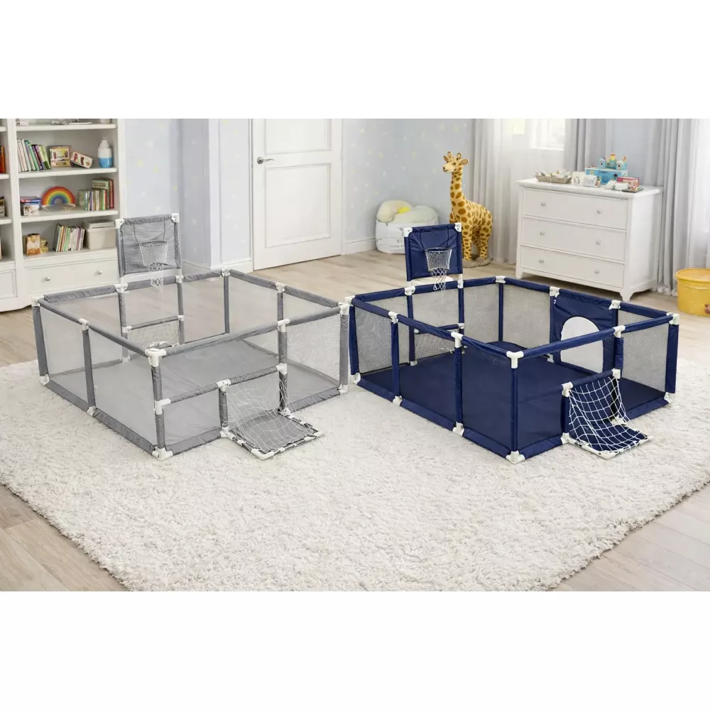 Манеж 2-в-1 – игровая зона и спортивный уголок в одном решении. Детский игровой манеж с кольцом для баскетбола и мячиками – это не только безопасное пространство для малыша, но и отличный способ развивать координацию, моторику и любовь к активным играм.