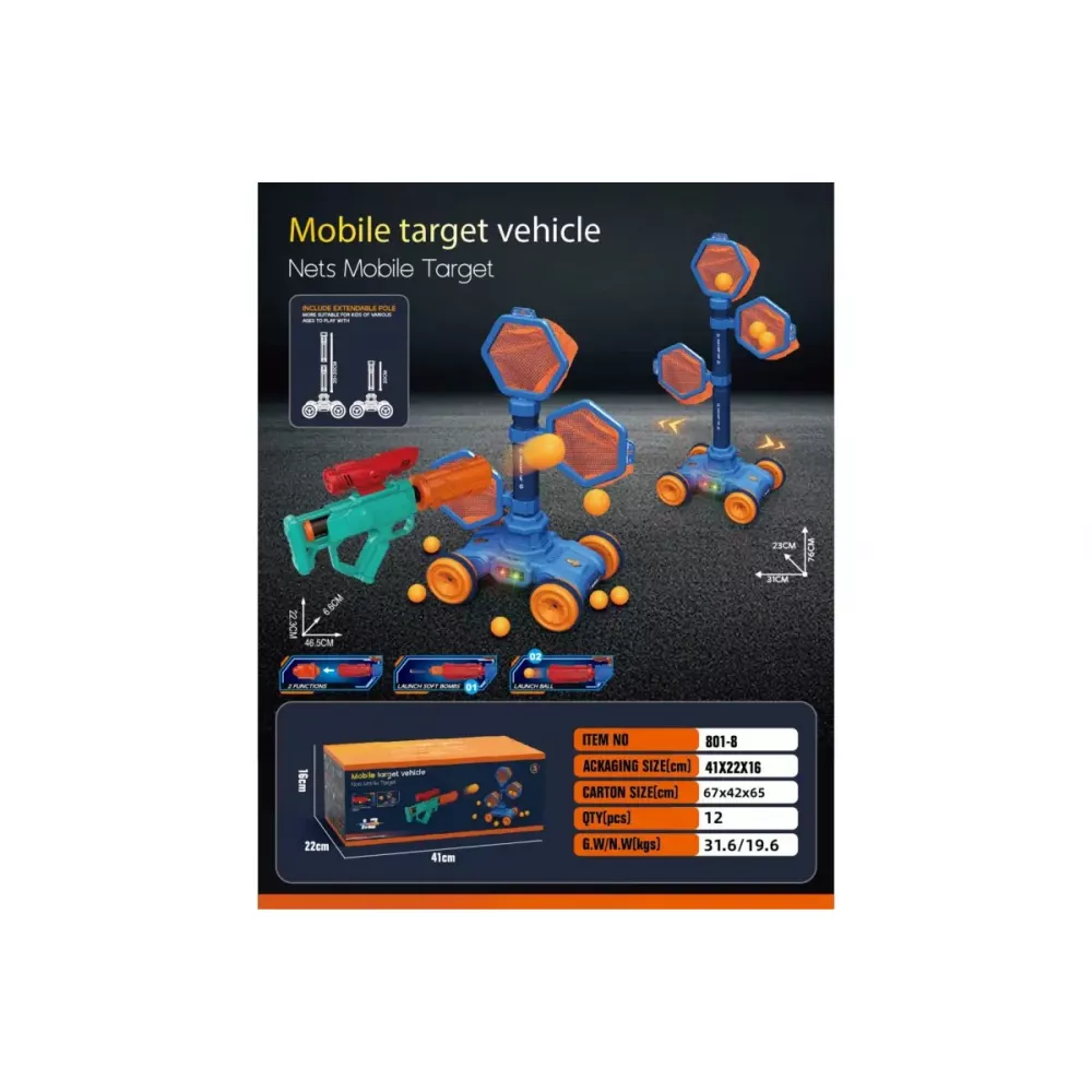 Подарите ребёнку море эмоций и увлекательных игр с детским тиром 801-8! Этот набор включает безопасный пистолет и умную мобильную мишень, которая самостоятельно двигается, создавая эффект настоящего тира. Игра развивает меткость, концентрацию и координацию движений, а также отлично подойдёт для весёлых соревнований с друзьями или родителями.