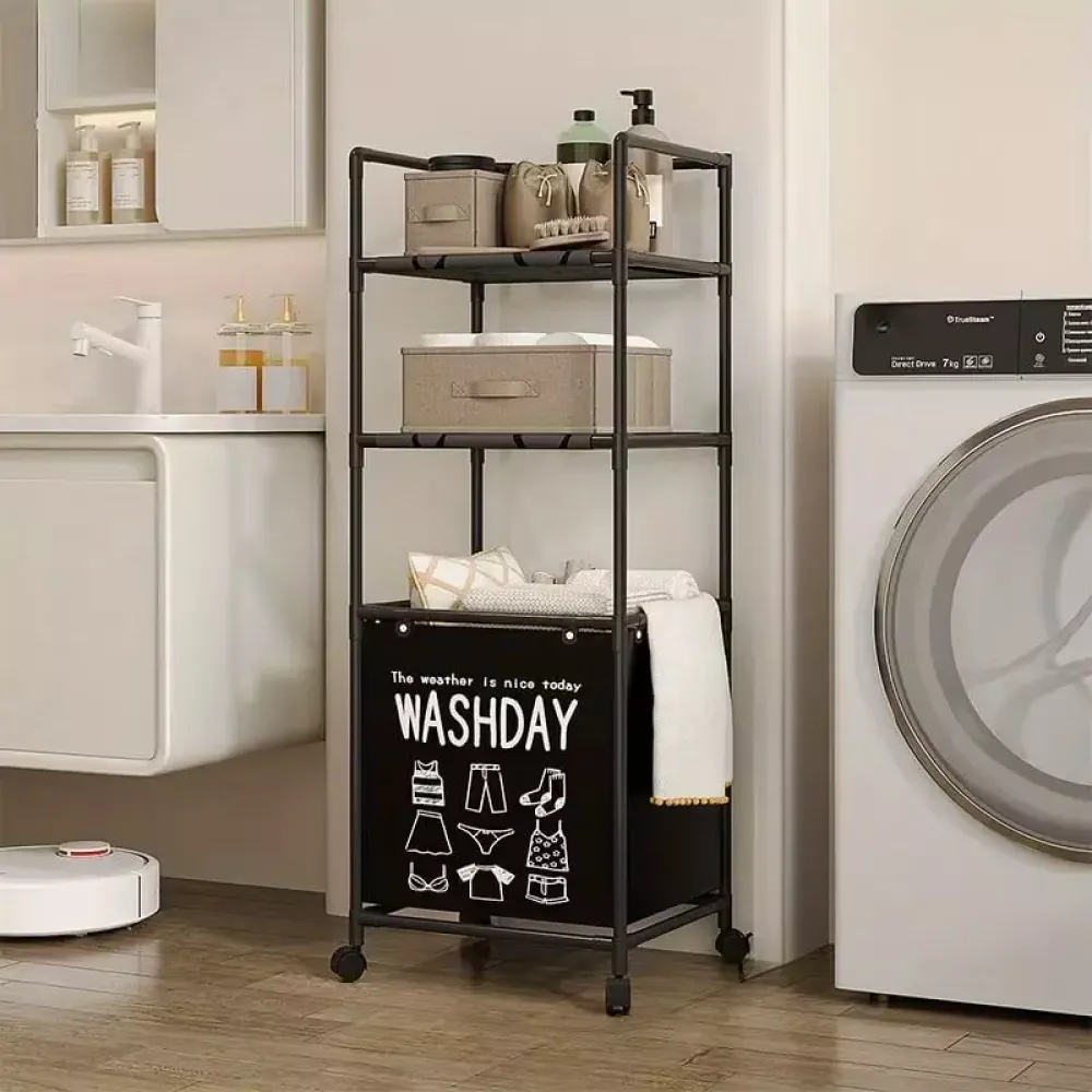 Двухуровневый органайзер для грязного белья / Корзина для белья с 2 полками 130х42х31см