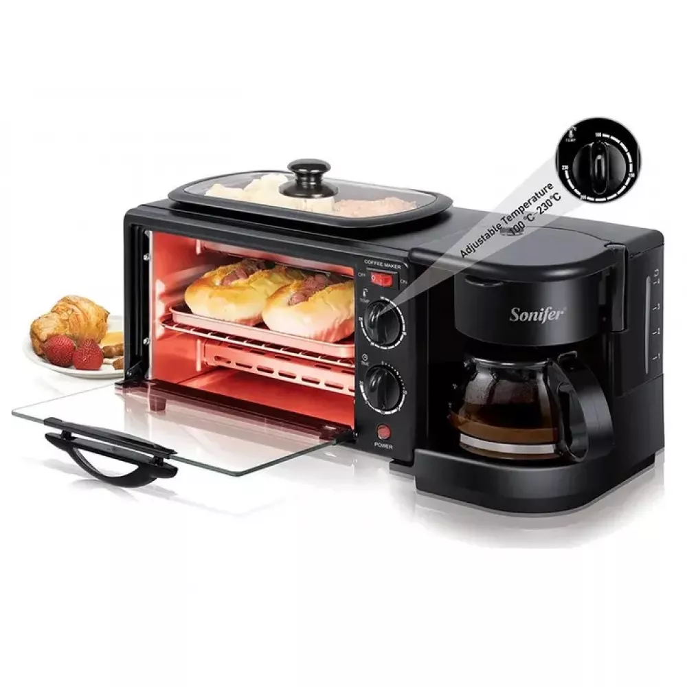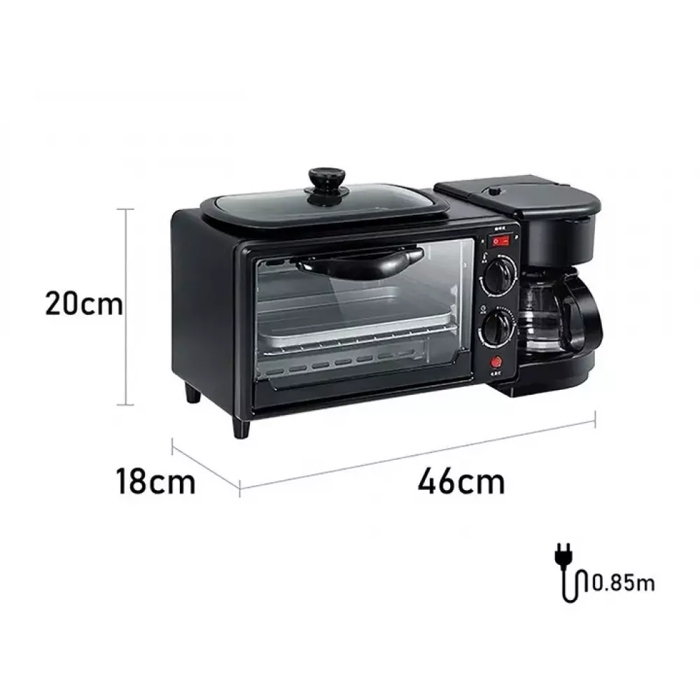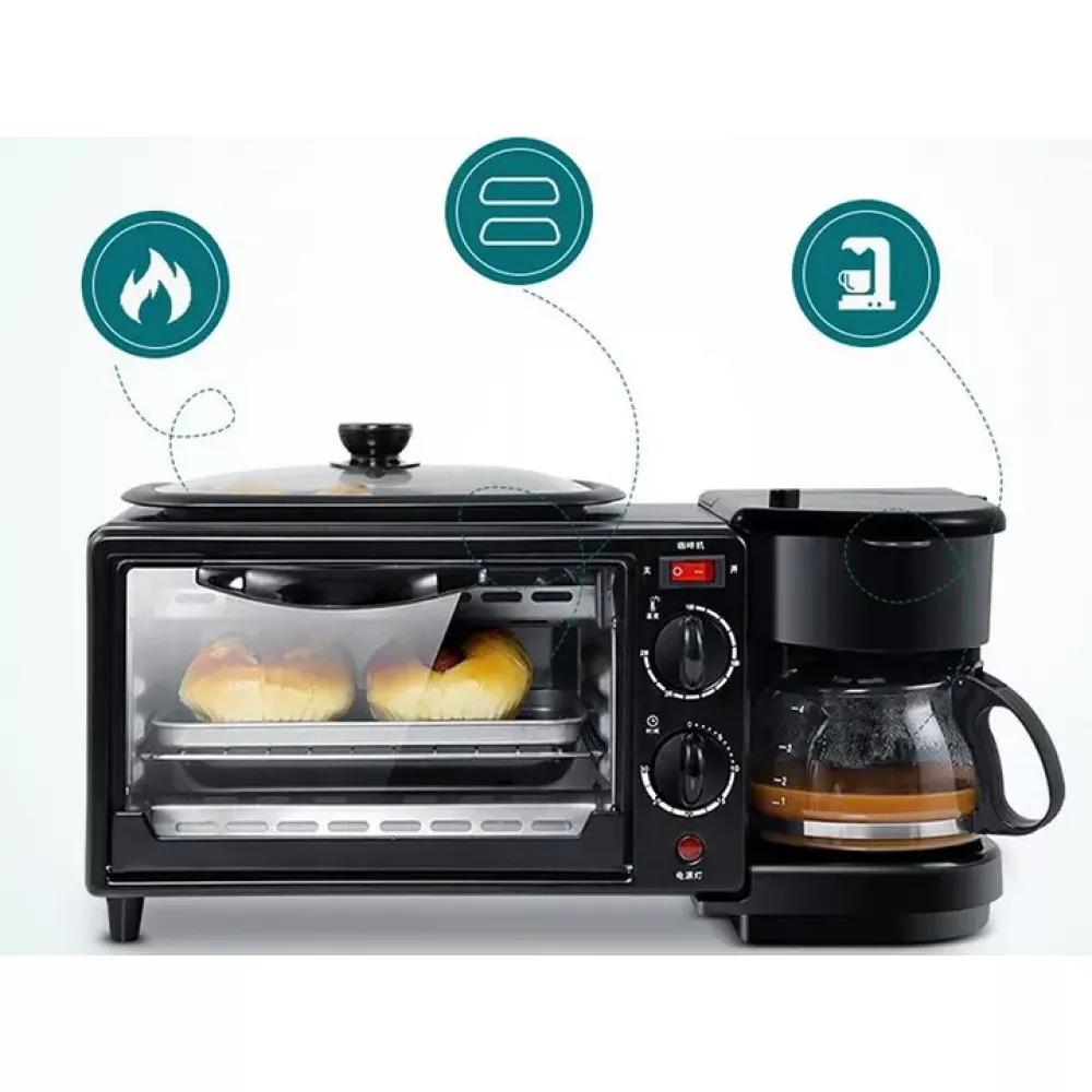 Печь электрическая настольная для кухни с кофеваркой и сковородой