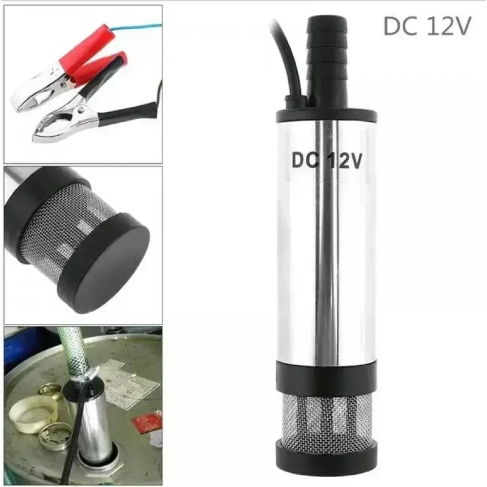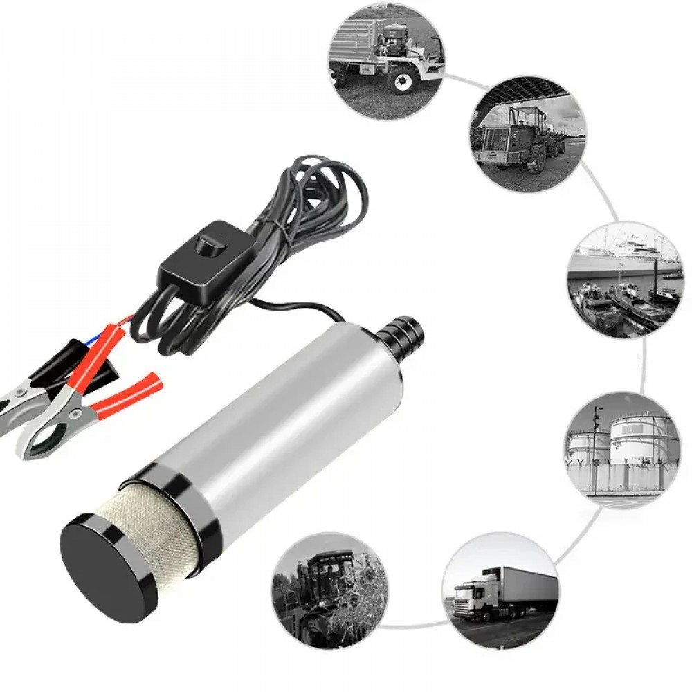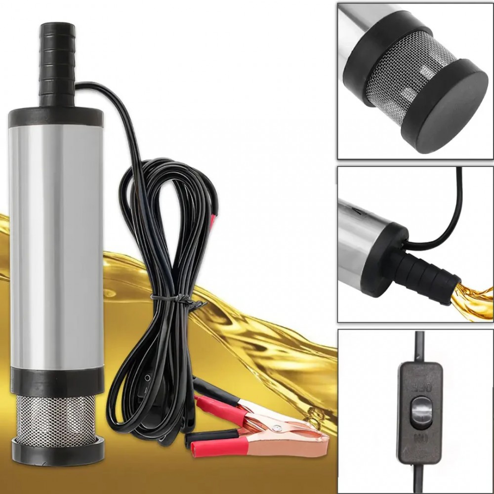 Электрический погружной насос для перекачки топлива и жидкостей 12V Серый