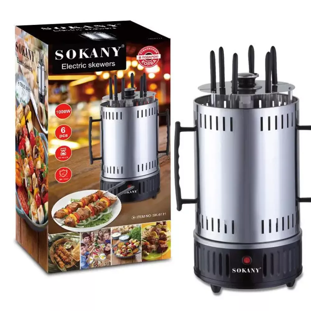 Sokany Electric Skewers – это электрическая шашлычница, которая состоит из 6 шампуров, каждый из которых оснащен специальной чашей для сбора жира и мяса.