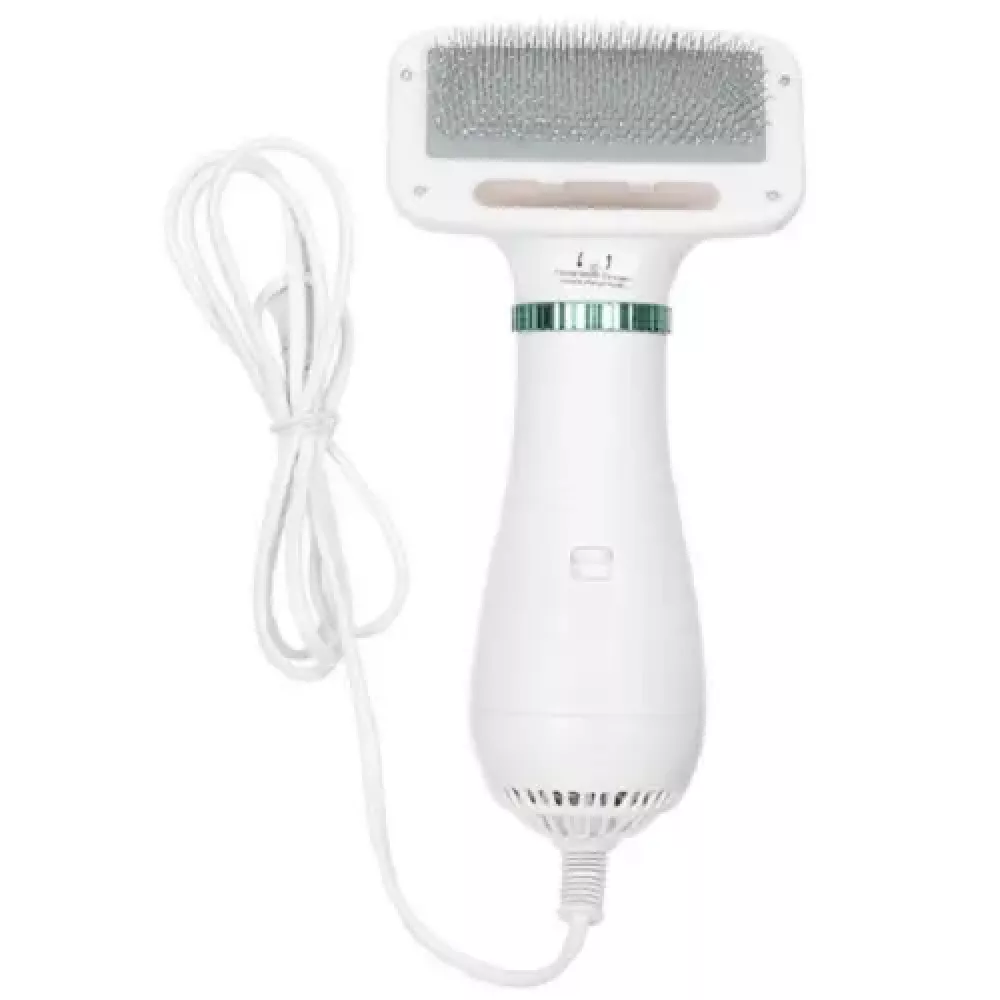 Фен щетка для собак и кошек Pet Grooming Dryer большинство наших любителей домашних животных сталкивались с такой неловкой ситуацией: одна рука держит щетку для волос, другая рука держит фен, а также беспокойство о том, что слишком высокая температура может повредить вашим питомцам.