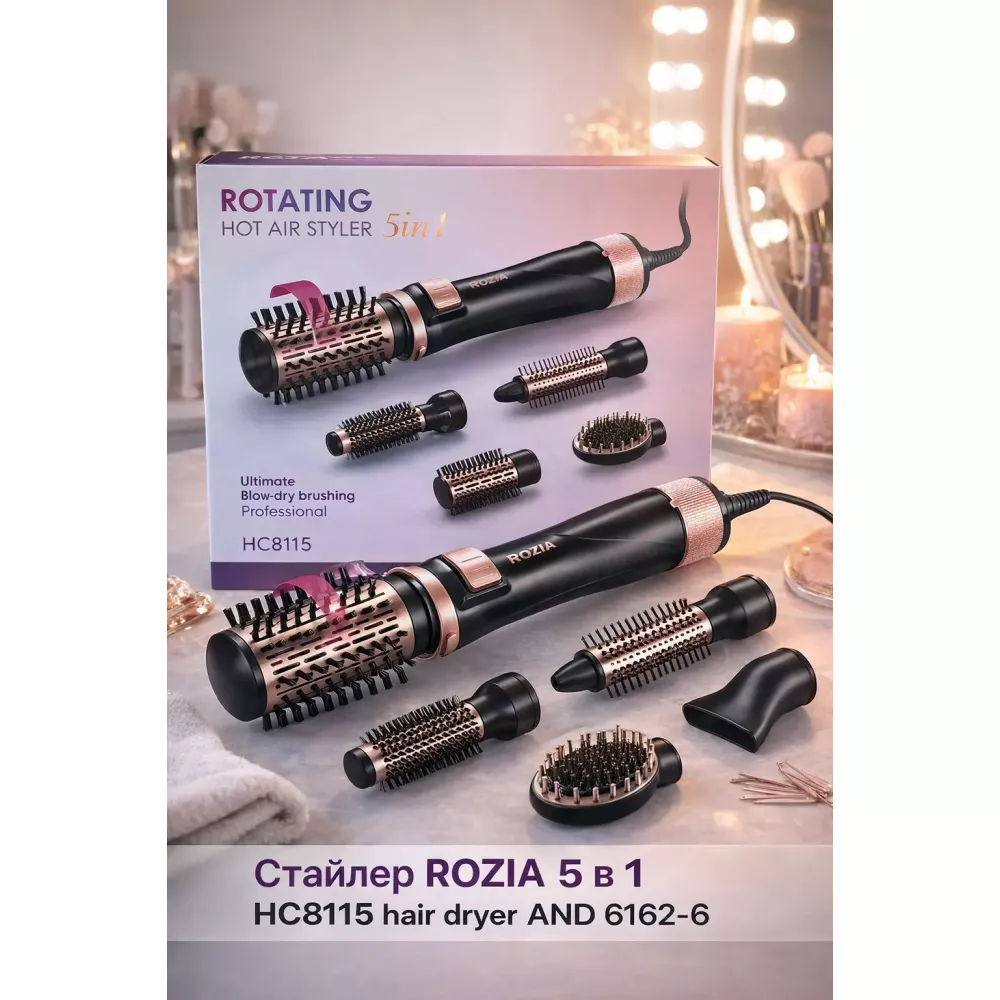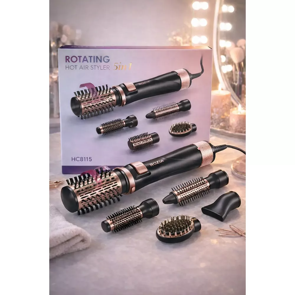 ROZIA HC8115 — универсальный стайлер 5 в 1, который заменяет сразу несколько приборов для укладки. Подходит для ежедневного использования, создания объёма, выпрямления, подкручивания и быстрой сушки волос в домашних условиях с эффектом салонной укладки.