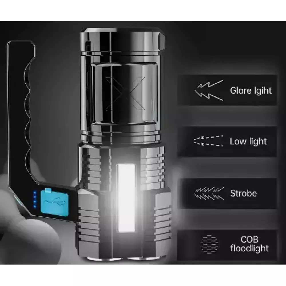 Основной светодиодный светильник может фокусировать сильный светильник, а боковой COB светильник подходит для кемпинга и чтения.