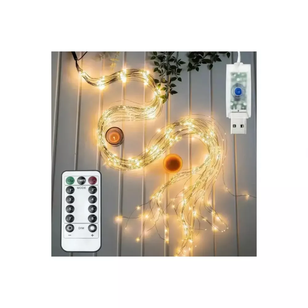 Длина: 3 м 20 нитей тончайшей серебристой проволоки на которых расположены крошечные светодиоды (LED лампочки) ярких цветов.