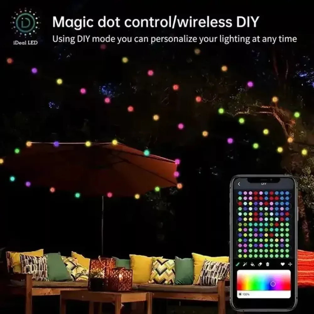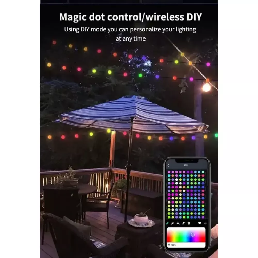 Вы можете самостоятельно настроить цвет и яркость световой цепочки.