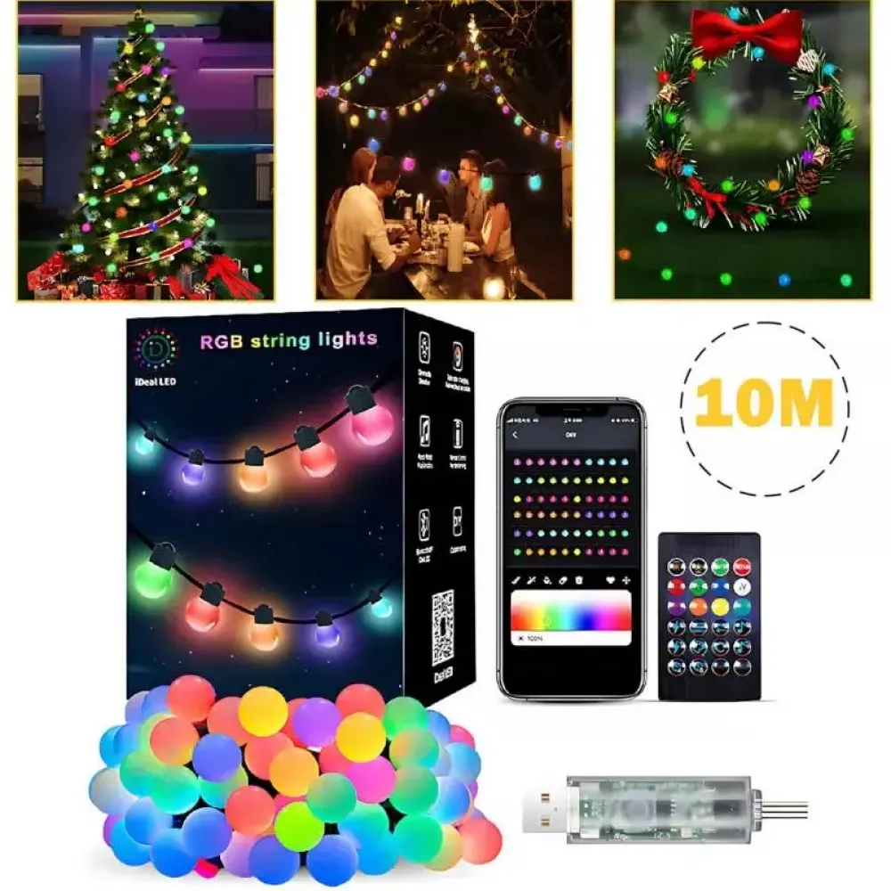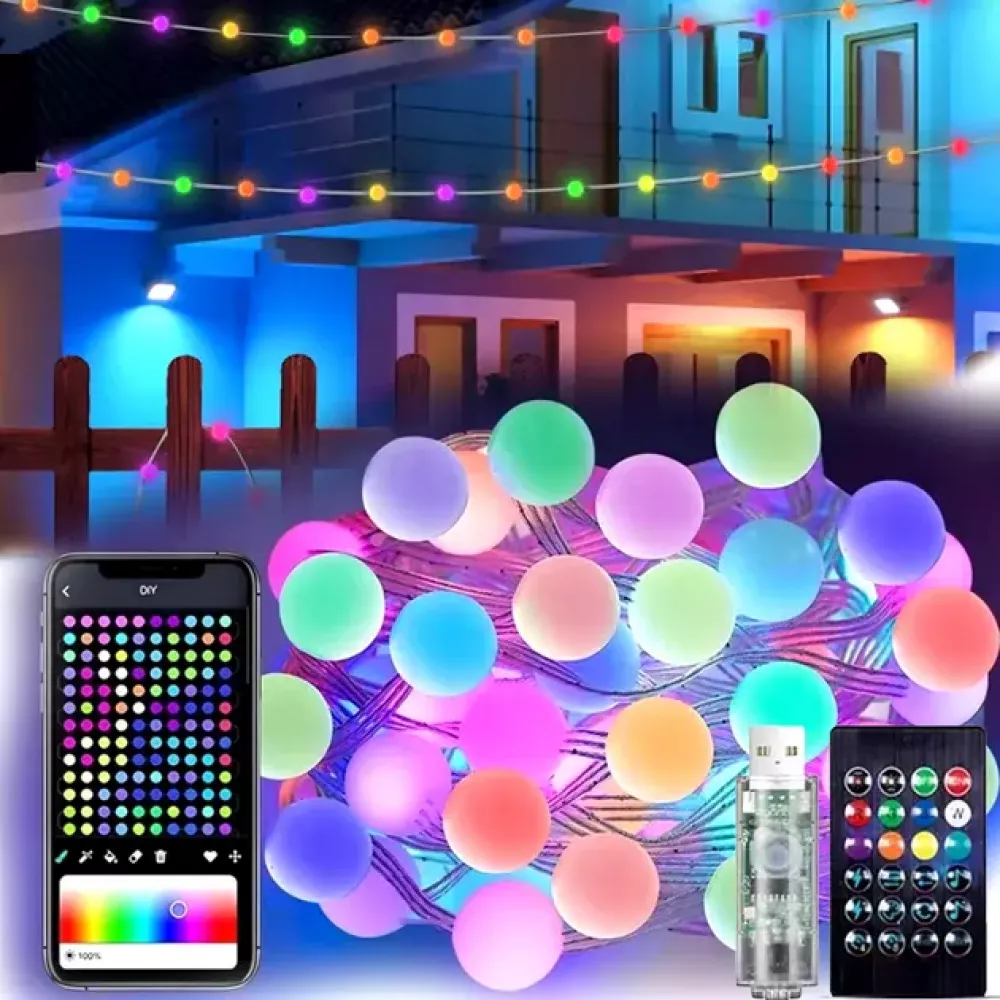 Гирлянда на елку матовый шарик 10 метров с пультом Usb Bluetooth управления с телефона модель (SFK-03)