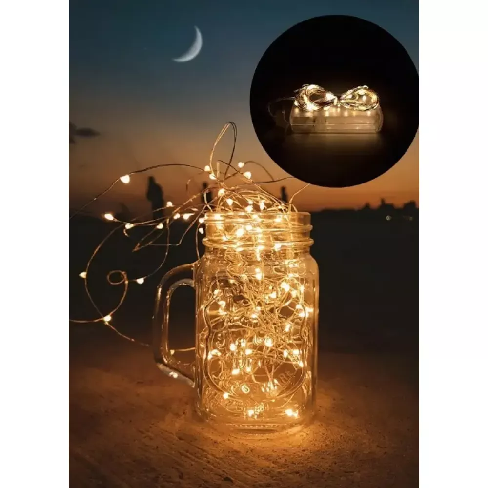 Уникальность гирлянды заключается в необыкновенной форме LED светодиодов теплого свечения, которые имеют форму капель росы, а автономная работа гирлянды от 3 батарекк АА, позволяет разместить гирлянду в местах где нет розеток и электричества. В основе гирлянды лежит провод-нить, который имеет толщину 1 миллиметр.