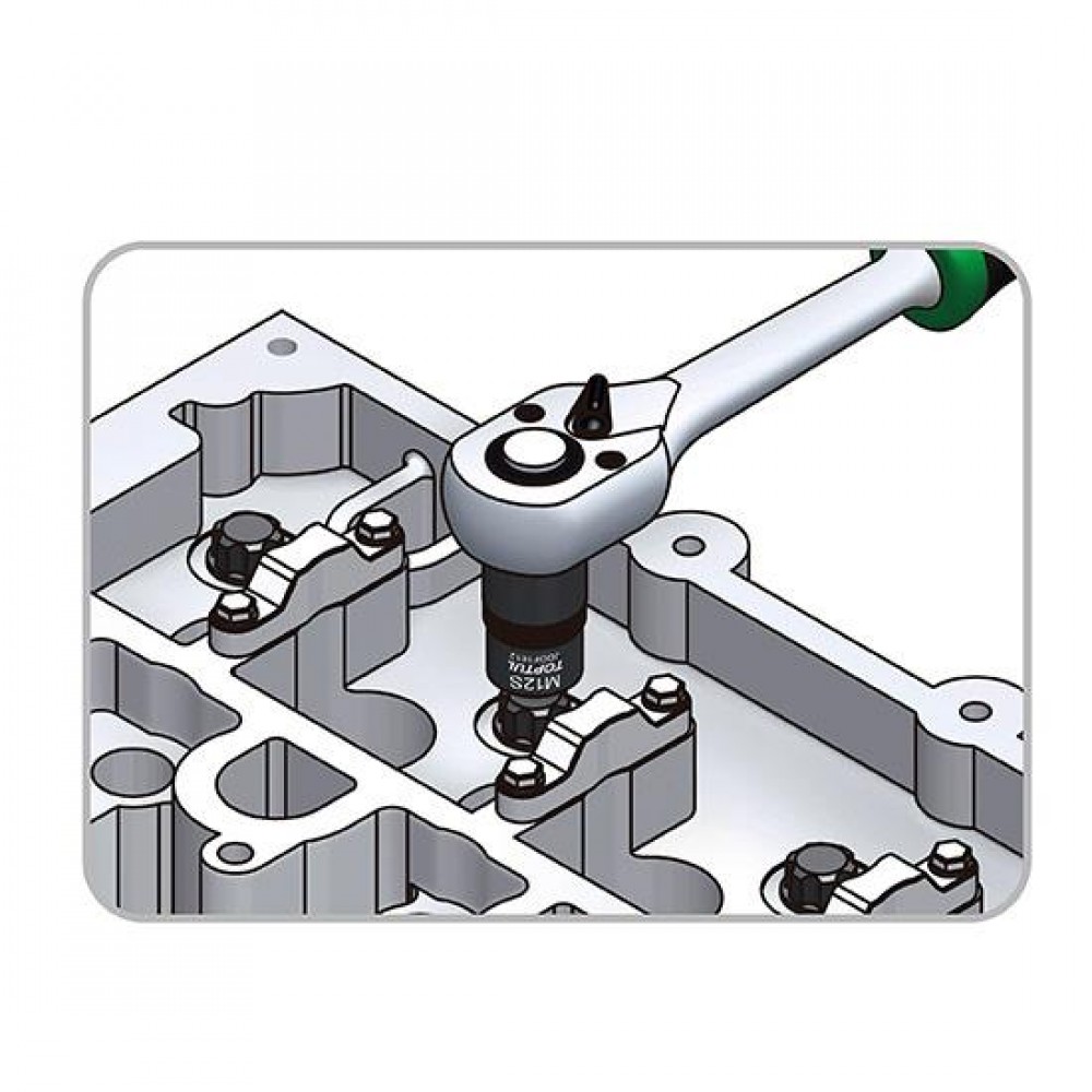 TOPTUL JDDF1612 — специализированная головка типа Ribe (M12S), предназначенная для обслуживания двигателей автомобилей NISSAN, в частности для отвинчивания болтов головки блока цилиндров и центрального болта маховика. Изготовлена из прочной хром-ванадиевой стали с термообработкой для повышенной долговечности.