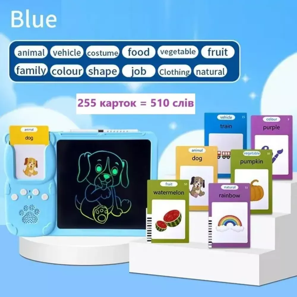 2 в 1 устройство – планшет и машинка для считывания слов на карточках;