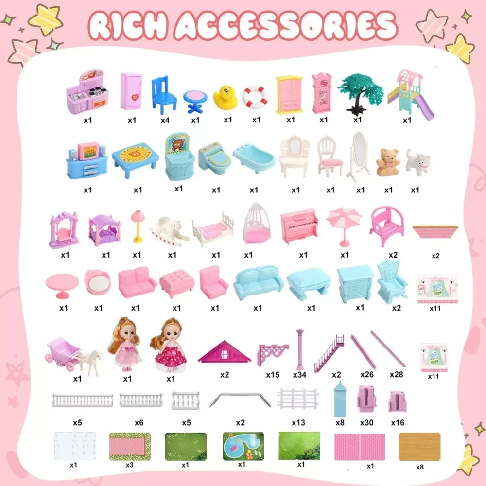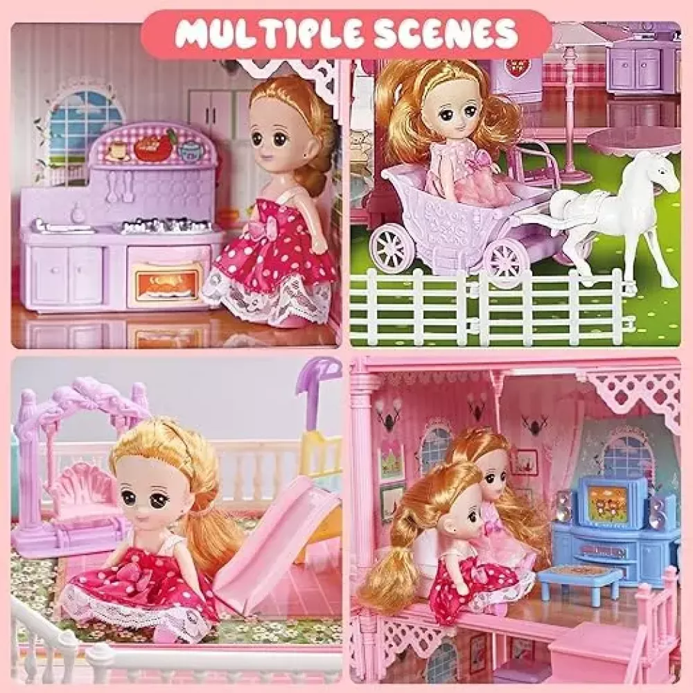 Подарите своему ребенку волшебный мир фантазий с ярким и просторным кукольным домиком! Этот многоуровневый дом исполнен в нежных розово-фиолетовых тонах и станет любимым местом для игр и творчества.