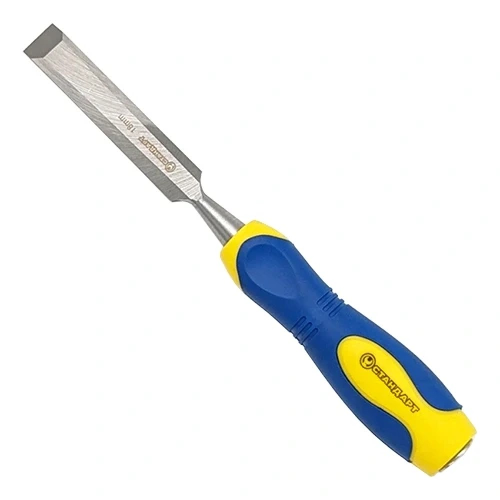 Стамеска по дереву 18 мм ударная, CR-V, двухкомпонентная ручка СТАНДАРТ WCPH1826 – это инструмент, предназначенный для точных и аккуратных работ с древесиной. Лезвие изготовлено из высококачественной хром-ванадиевой стали (CR-V), что обеспечивает отличную прочность и долговечность, а двухкомпонентная ручка гарантирует удобство в использовании и надежное удержание во время работы.