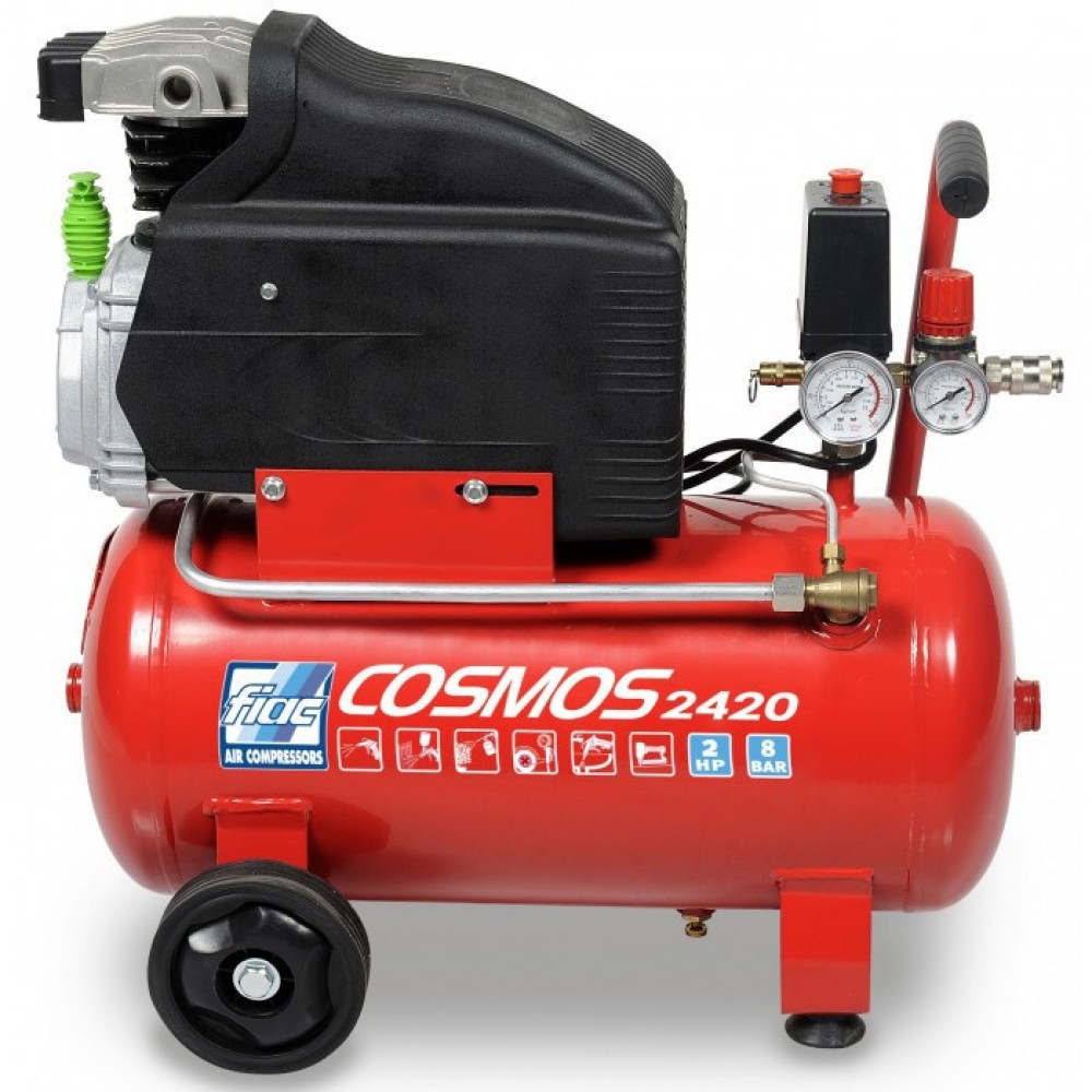 Компрессор 24л поршневой 220В COSMOS 2420 CE ROSSO FIAC 9995260000. Компрессор воздушный FIAC COSMOS 2420 - классический поршневой, масляной компрессор, выполненный на ресивере 24 литров, идеально подходит для дома, гаража, дачи: проведение окрасочных работ с краскопультом, продувка различных механизмов, подкачка колес и воздушных конструкций, а также работать с многочисленным пневмоинструментом.
