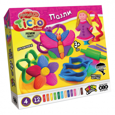 Тесто для лепки "Master-Do: Пазлы" - это набор креативного творчества, разработанный и предназначеный для детей и взрослых. Тесто очень мягкое, отлично держит форму, приятное на ощупь , яркое и безопасное. Набор способствует развитию мелкой моторики рук и тактильные ощущения. Состоит из: 12 цветов теста, 4 формочек, 2 стеков, скалки и инструкции. Комплектация: 12 цветов теста, 4 формочки, 2 стека, скалка и инструкция