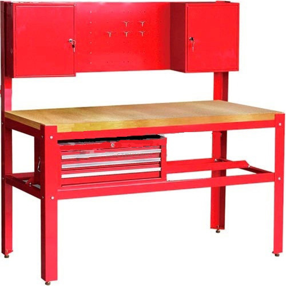 Слесарный стол-верстак имеет столешницу из дерева. Он является оптимальным рабочим местом как для специалиста на автосервисе, так и для мастера столярных работ. Его можно разместить в любом гараже при условии наличия достаточного пространства. Основные элементы конструкции изготовлены из листового металла, что делает такой верстак очень надежным в использовании.